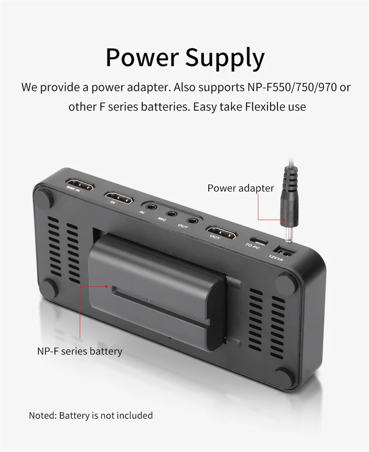 【 2 modos de fuente de alimentación】El reproductor mini DV viene con un adaptador de corriente de 12V/1A y también es compatible con baterías de la serie F, como la de 750/970/, por lo que es adecuado tanto para uso en interiores como en exteriores es adecuado para uso en exteriores.