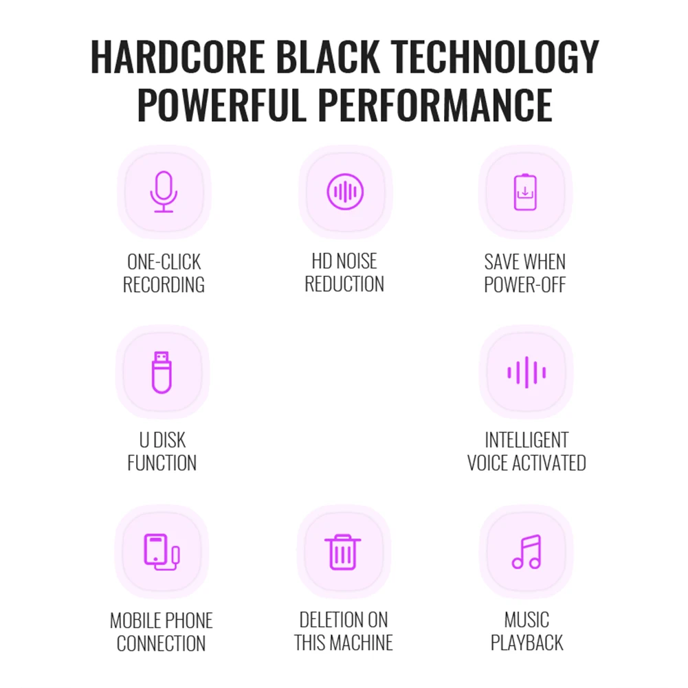 3.Activación de voz inteligente:Con tecnología inteligente de activación por voz, el pequeño reproductor de audio comienza a grabar cuando detecta sonido y se detiene en silencio, conservando eficientemente el espacio de la memoria y la duración de la batería mientras captura cada detalle del sonido.