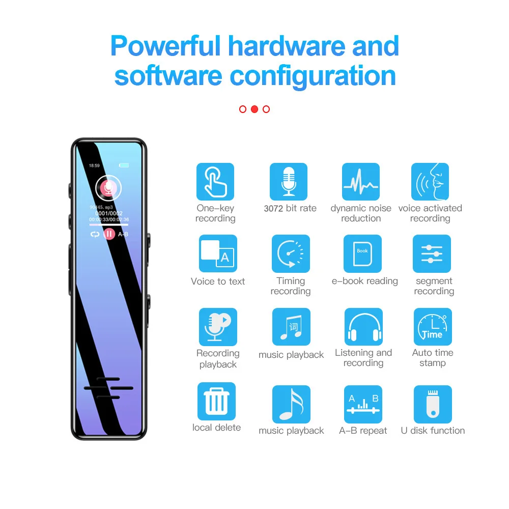 ● Admite grabación cronometrada, grabación segmentada, transcripción de audio, ajuste de sensibilidad de grabación y otras funciones.