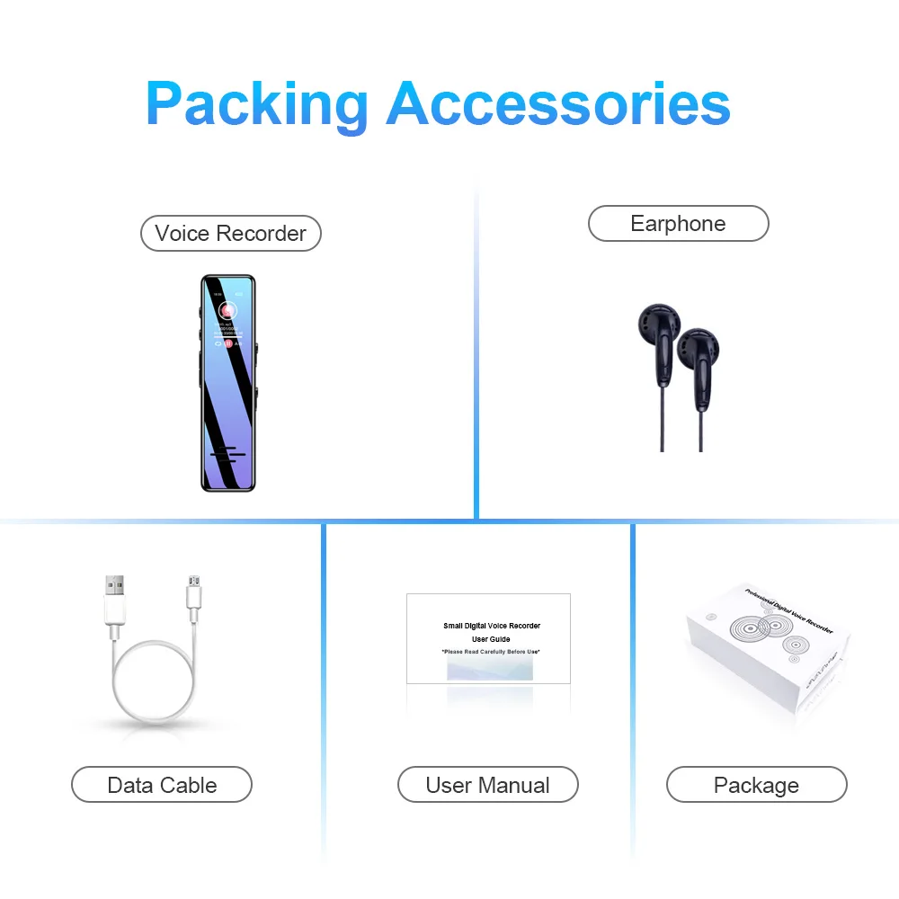 Grabadora Digital activada por voz 16G/32G Mini dictáfono Grabación de Audio de larga distancia Reproductor de MP3 Reducción de ruido Registro WAV