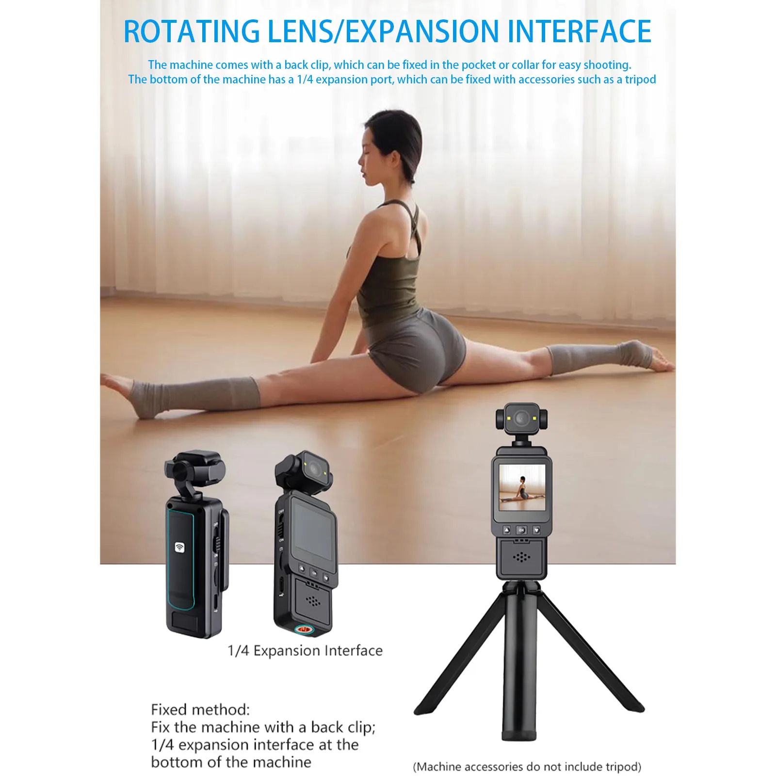 2.Grabadora de vídeo exterior flexible:La innovadora lente permite 270° horizontal y 180° Rotación vertical, compatible con pantalla abatible para uso dinámico de grabadoras de vídeo en exteriores.Capture sin esfuerzo desde múltiples ángulos en cualquier entorno para satisfacer diversas necesidades de disparo.