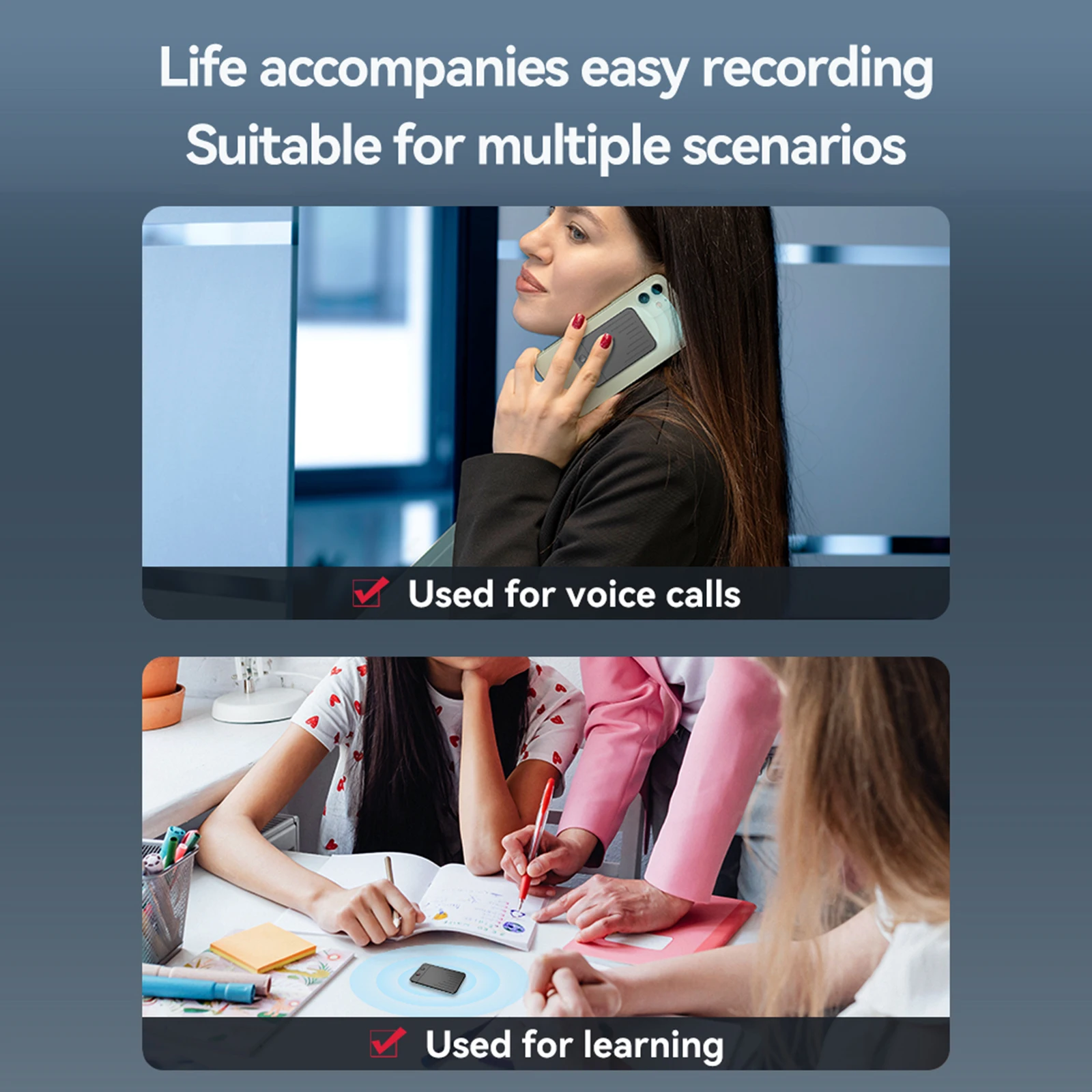 5.Grabación cristalina:Confíe en la tecnología de doble sensor en este dispositivo de traducción de lenguaje resumen para una claridad de audio excepcional.Incluso en entornos ruidosos, la reducción de ruido basada en IA se centra en las voces, filtrando los sonidos de fondo para que capture cada palabra importante con precisión.