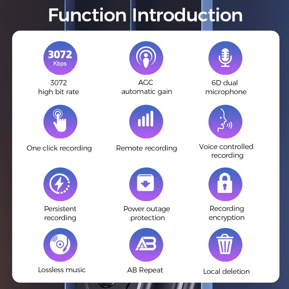 3.Apagado de guardado automático: en caso de un corte repentino de energía, el lápiz de grabación guardará automáticamente el archivo de grabación por usted.