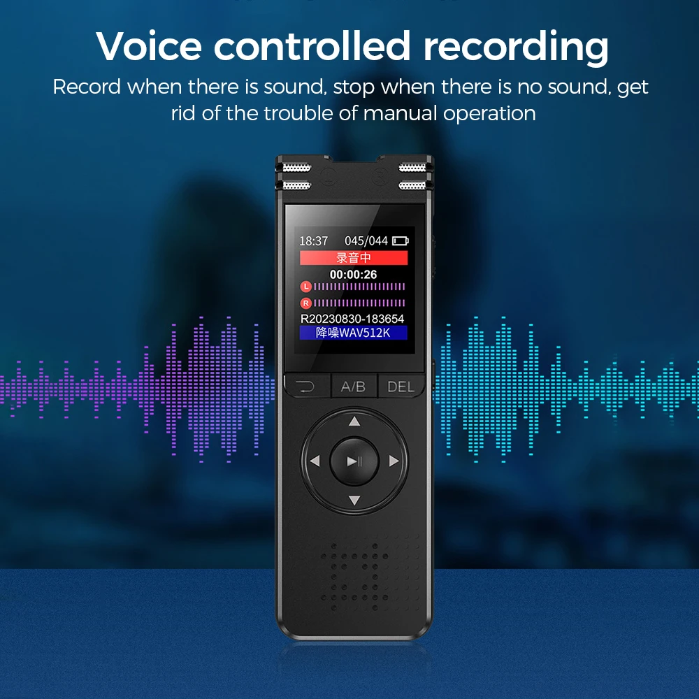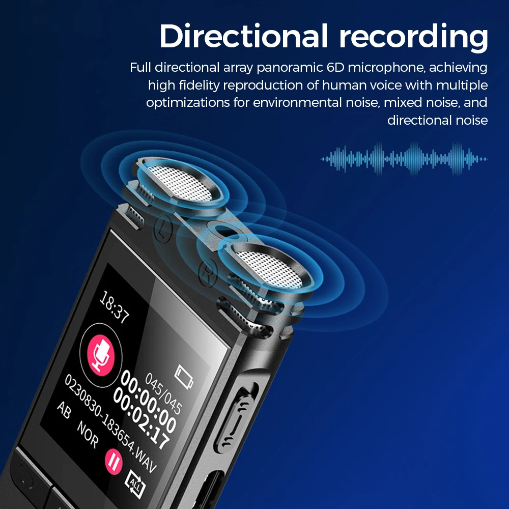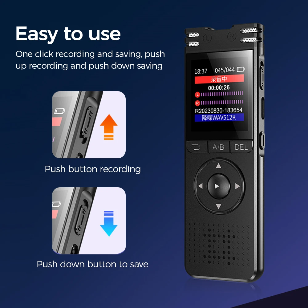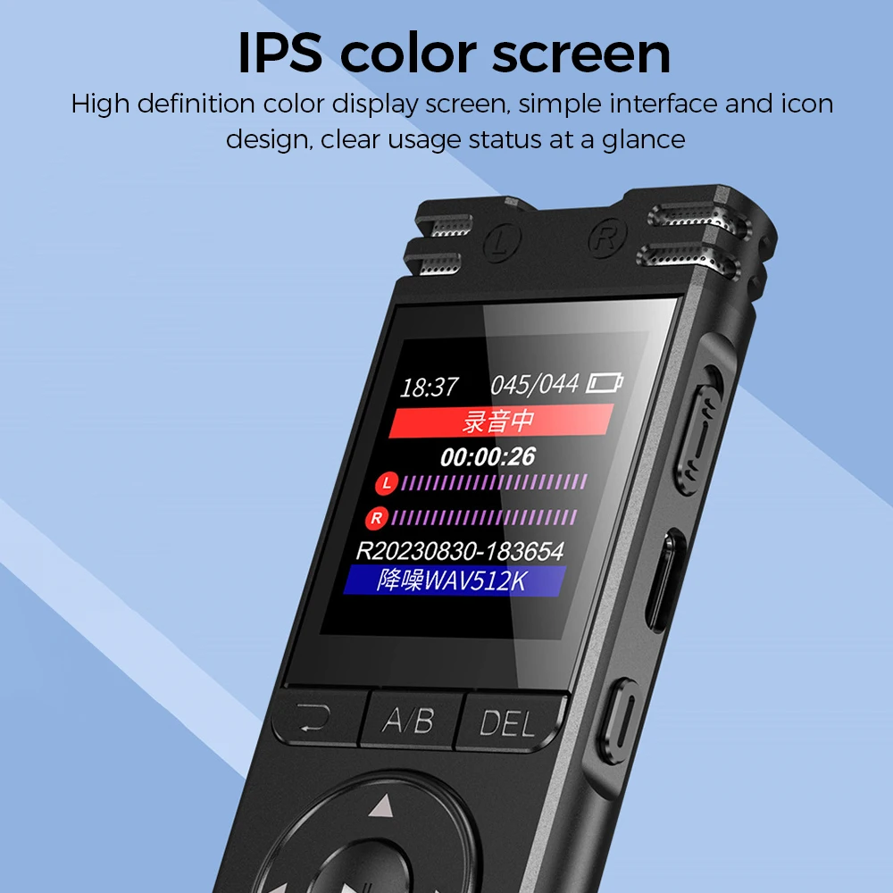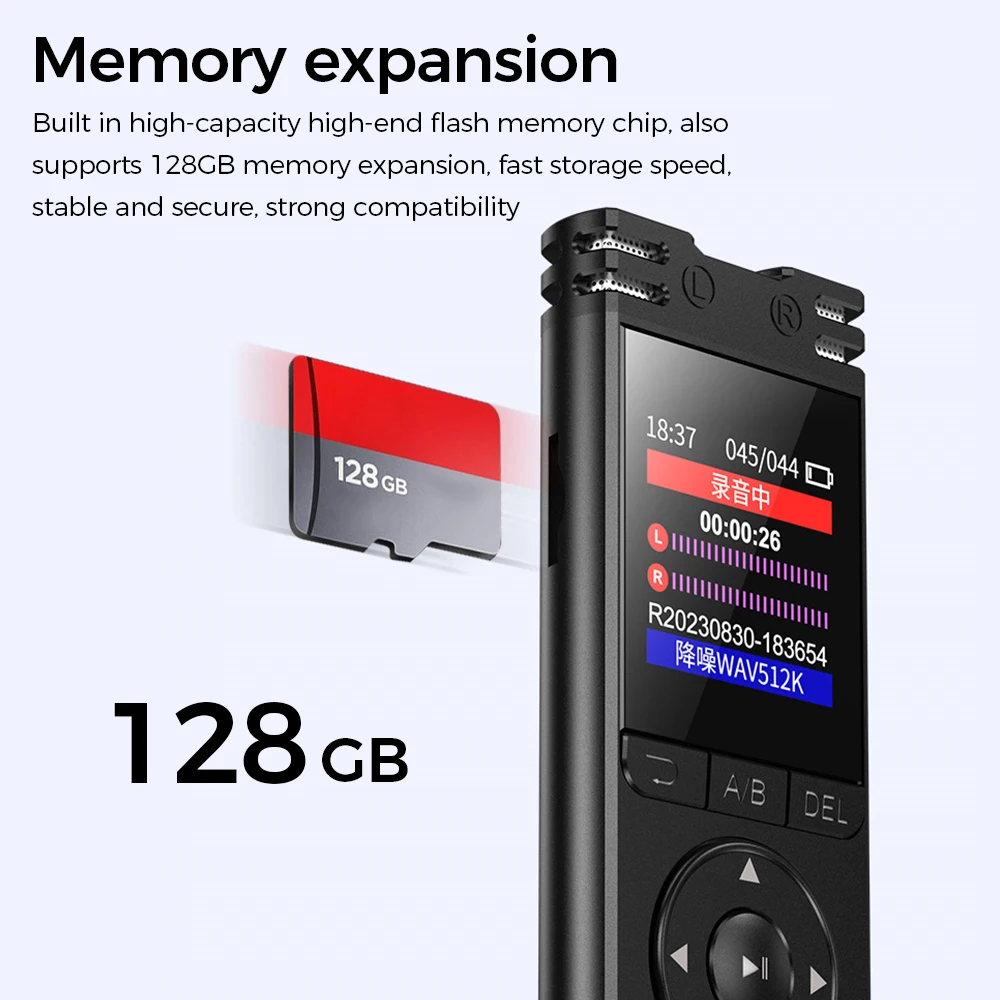 Grabadora de voz de audio Digital 128GB, dictafono de sonido profesional, reducción de ruido HD, grabación activada por voz, reproductor MP3 WAV para reuniones