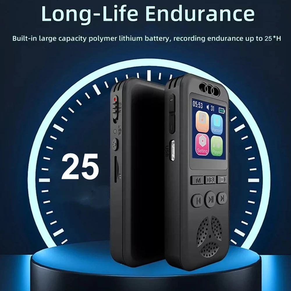 ✅ Batería de larga duración y fácil de transportar: esta grabadora tiene una batería de litio incorporada de 250 mAh que puede grabar continuamente durante hasta 25 horas, lo que la hace ideal para grabaciones o en espera a largo plazo.Su diseño liviano y compacto facilita su transporte, lo que lo convierte en un compañero ideal para conferencias, conferencias, entrevistas y cursos de formación.
