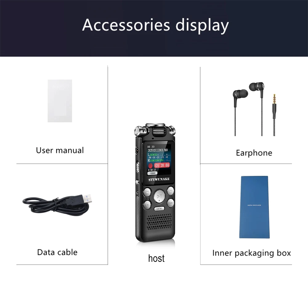 Grabadora de voz Digital profesional micrófono bidireccional 8G 16G 32G dictáfono reducción de ruido activada por voz PCM WAV grabación reproductor de MP3