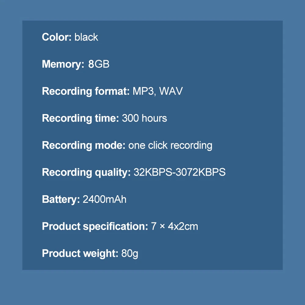 Comprar Grabadora de voz Mini, grabadora Digital de 300 horas, dictáfono, 8G, profesional, HD, reducción de ruido, activada por voz, reproductor Mp3