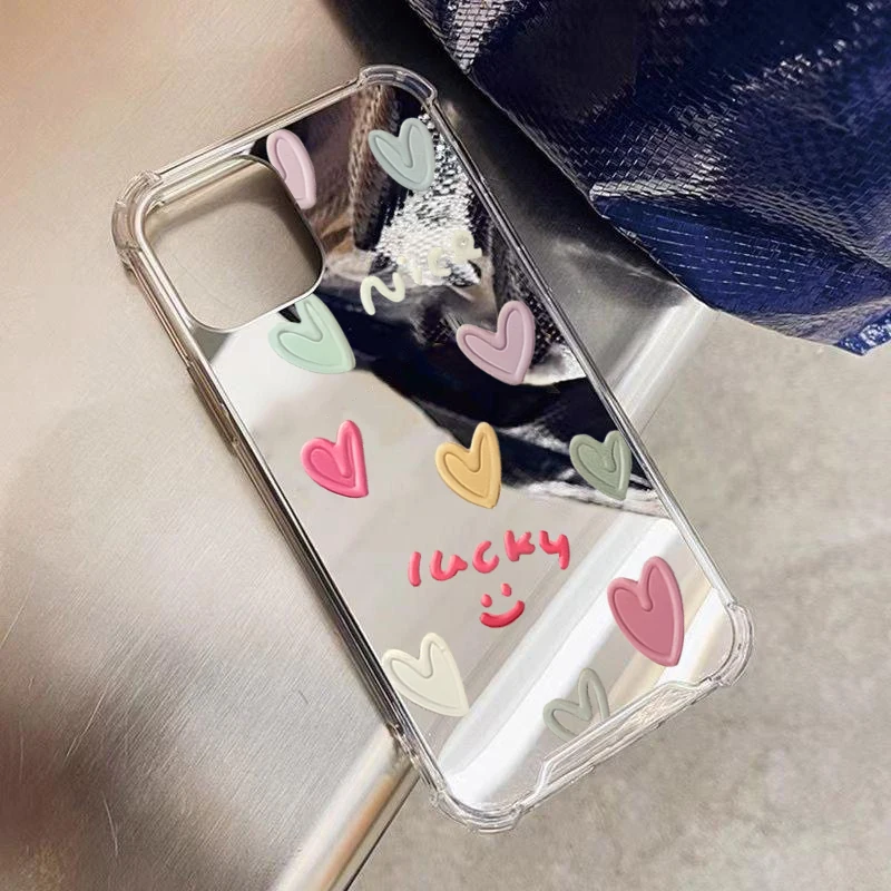 Graffiti Love Simple cara sonriente espejo funda de teléfono para iPhone 16 15 14 Pro Max 11 12 13 Pro 7 8 Plus XR X XS Max funda creativa