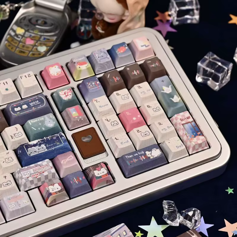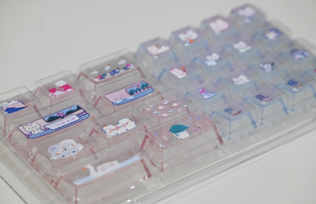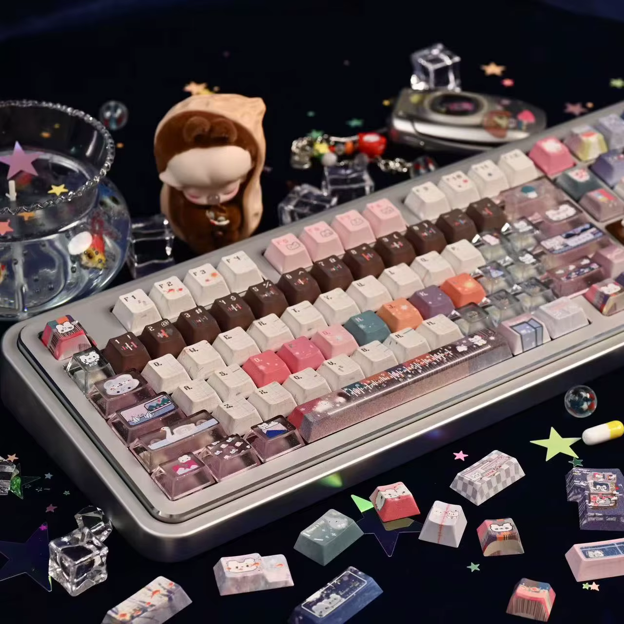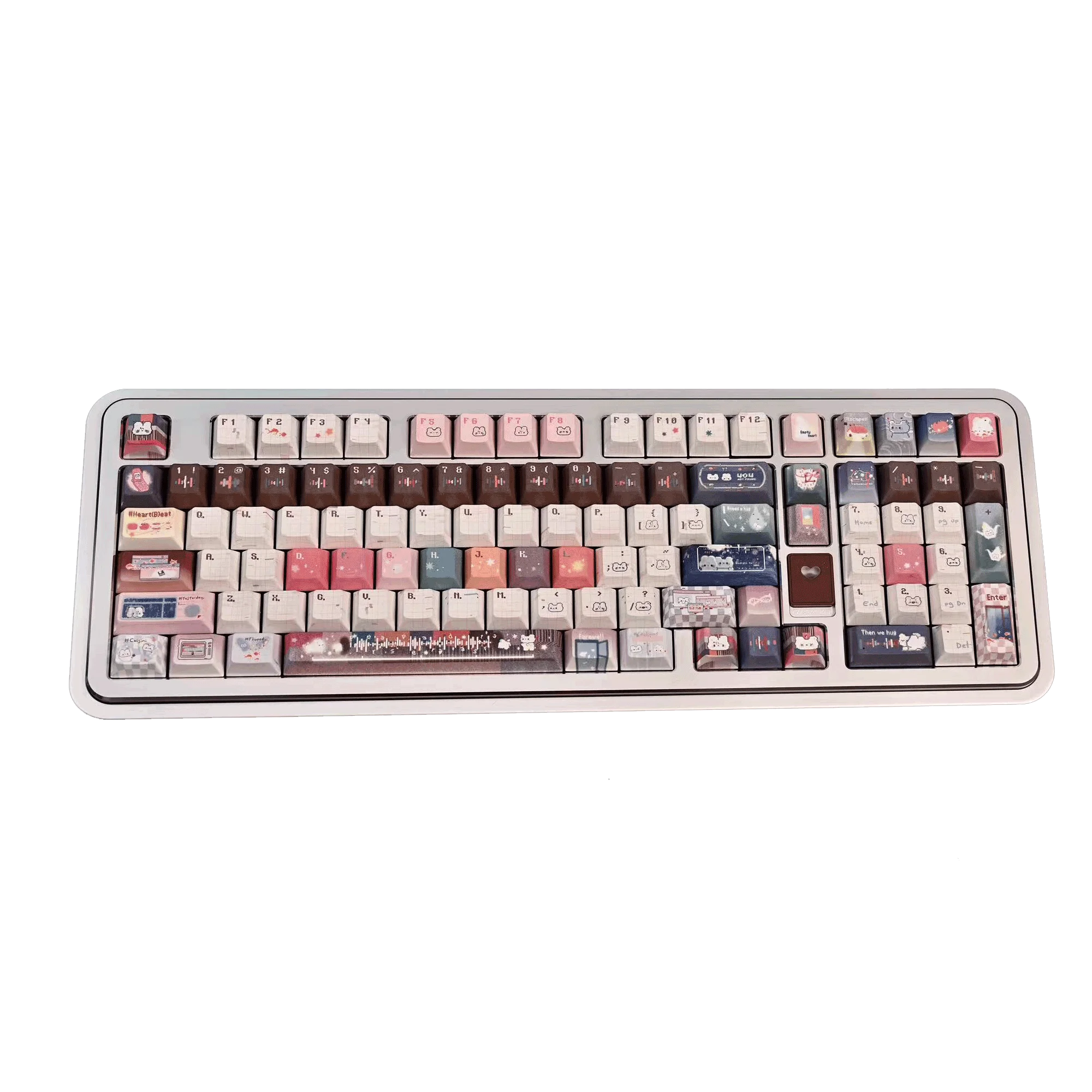 Gran oferta de teclas translúcidas esmeriladas, proceso de impresión a Color UV personalizado, tapa de tecla de perfil de cereza PBT, tapa de tecla de punto bonito de dibujos animados para PC