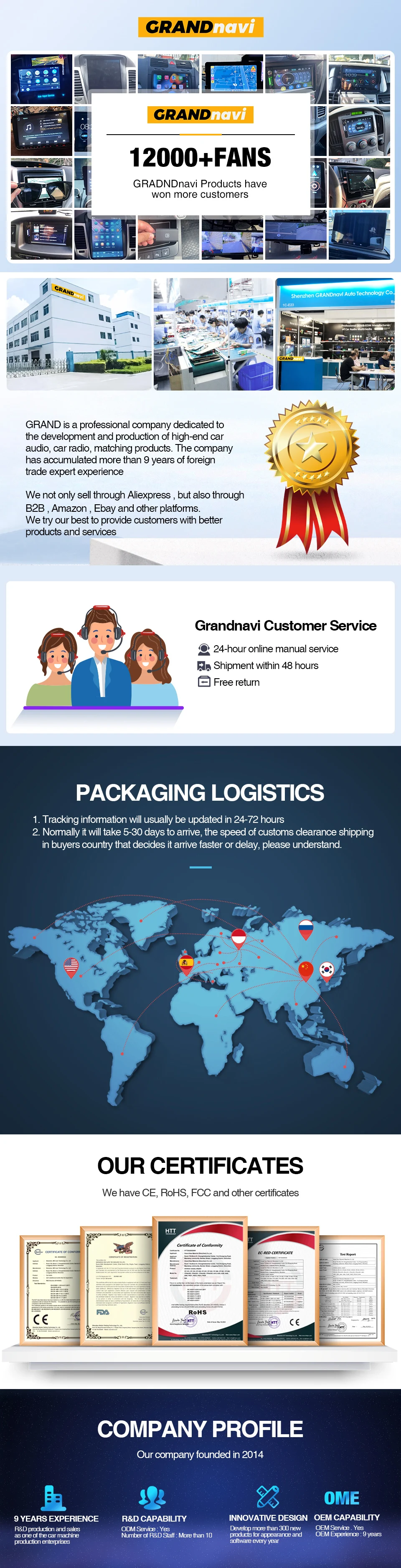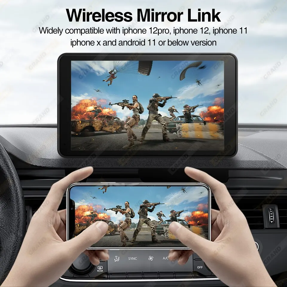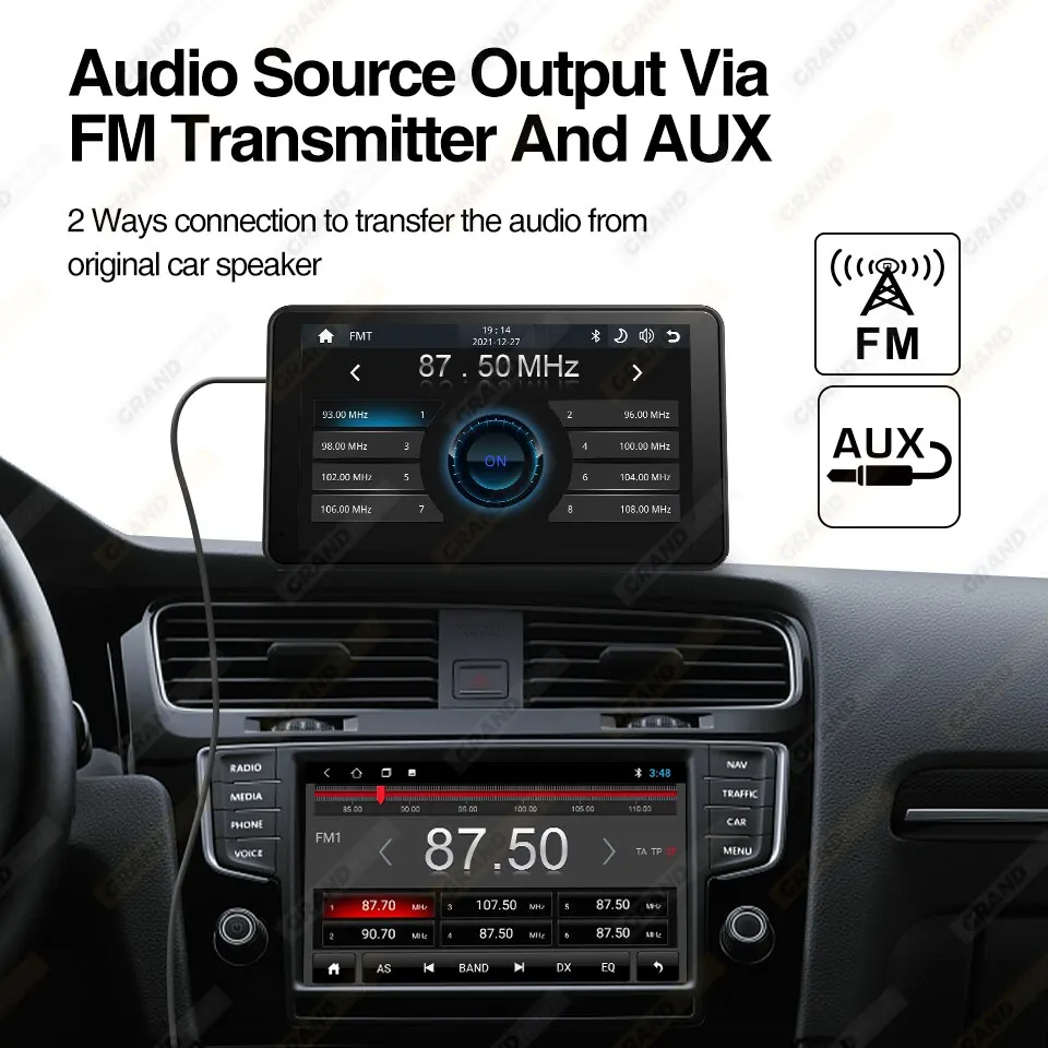 3.Salida de fuente de audio a través del transmisor FM y conexión AUX de 2 vías para transferir el audio del altavoz original del automóvil4.Carplay inalámbrico y Android auto, adecuado para teléfonos móviles Apple y Android, puede sincronizar las páginas de los teléfonos móviles cuando entre en el automóvil
