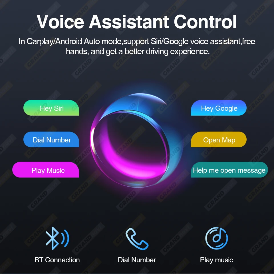 12. Control del asistente de voz, en el modo Carplay/Android Auto admite el asistente de voz Siri/Google, manos libres y obtiene una mejor experiencia de conducción.