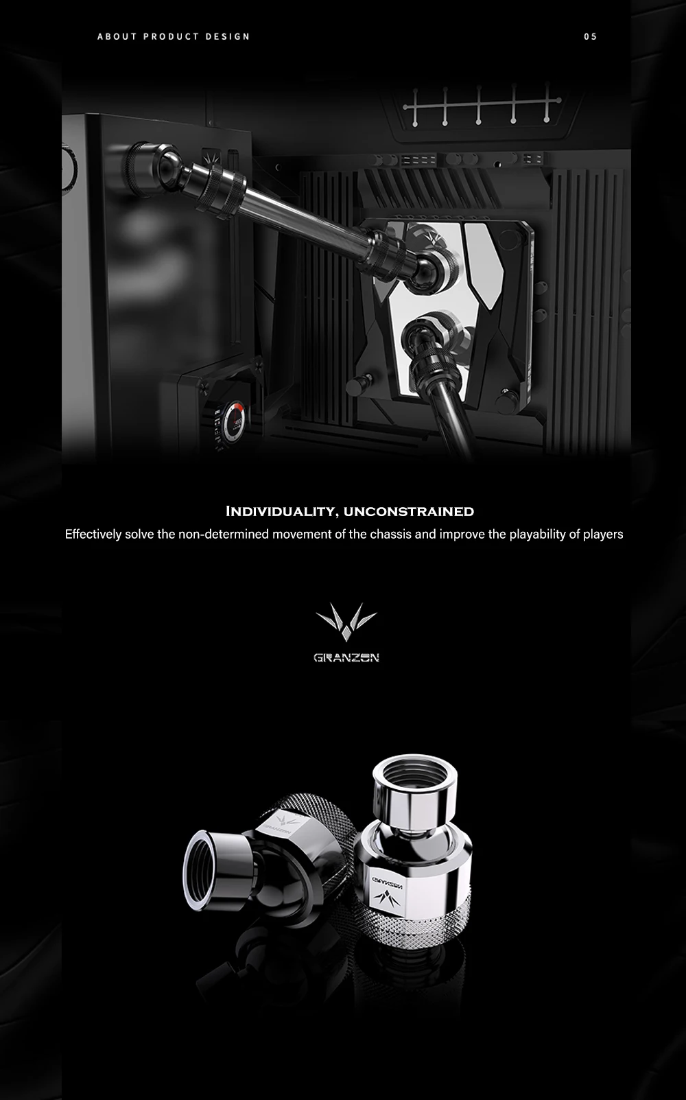 Granzon, accesorio giratorio libre de 360 grados, conector macho a hembra G1/4 '', adaptador de refrigeración por agua de junta Universal Negro/plata