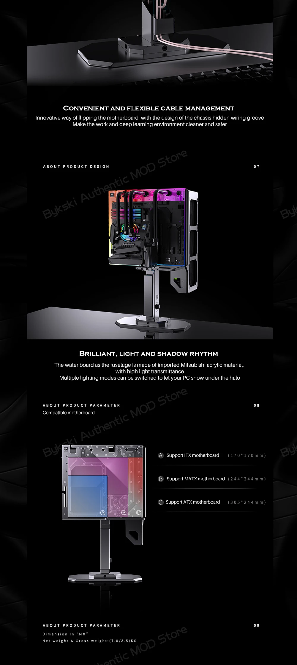 Granzon-placa astro G10 totalmente transparente, carcasa refrigerada por agua dividida, soporte ITX MATX ATX, instalación de placa base, refrigeración por agua
