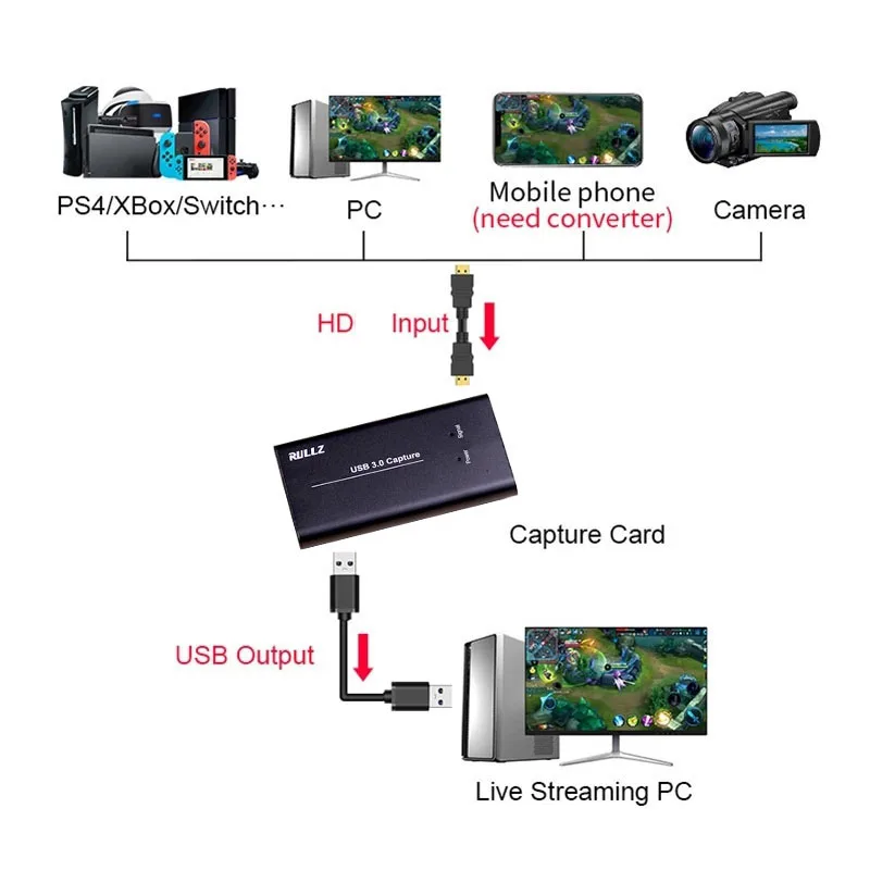 Two captures can be used on one PC HDMI-compatible Input/output Resolution: up to 1080p 60Hz or 4K 30/60hz as you choose PC Record Quality: up to 1080P 60fps