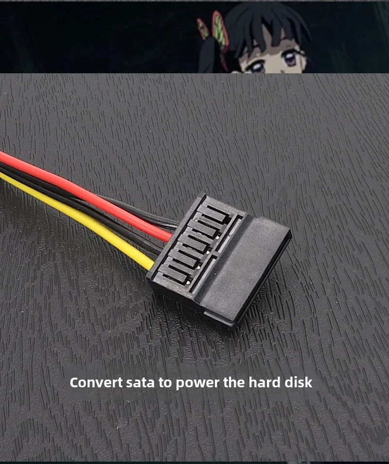 Product function: Connect the graphics card 6PIN/8PIN to the power cord, and transfer SATA to power the hard drive. Implement the function of converting the original 6PIN/8PIN graphics card cable to power the hard drive