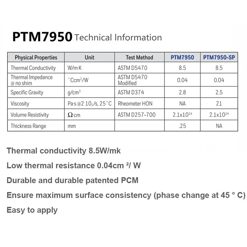 PTM7950SP Thermal Conductive Silicone Grease Laptop CPU Graphic Card GPU Phase-change Heat Dissipation Paste PC Cooler