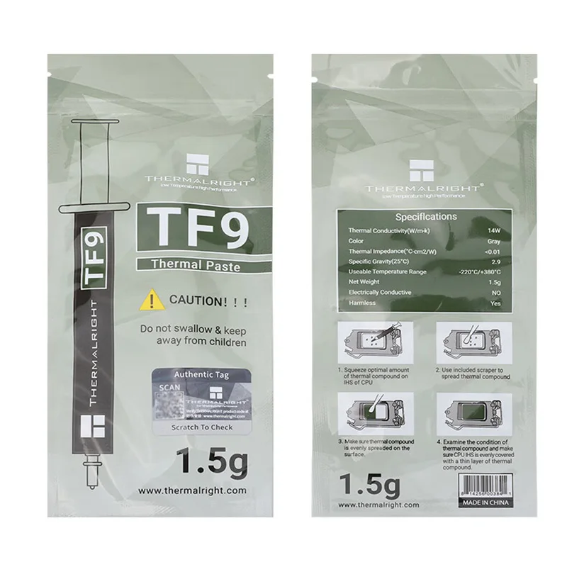 Comprar Grasa térmica Thermalright TF9 1,5/2,9g 14W/M.K CPU GPU refrigeración ordenador portátil tarjeta gráfica pasta térmica con raspador
