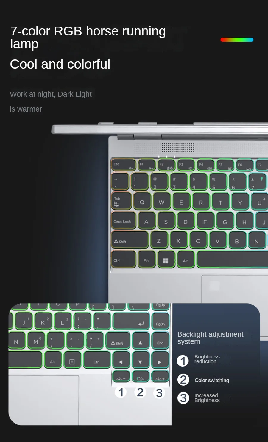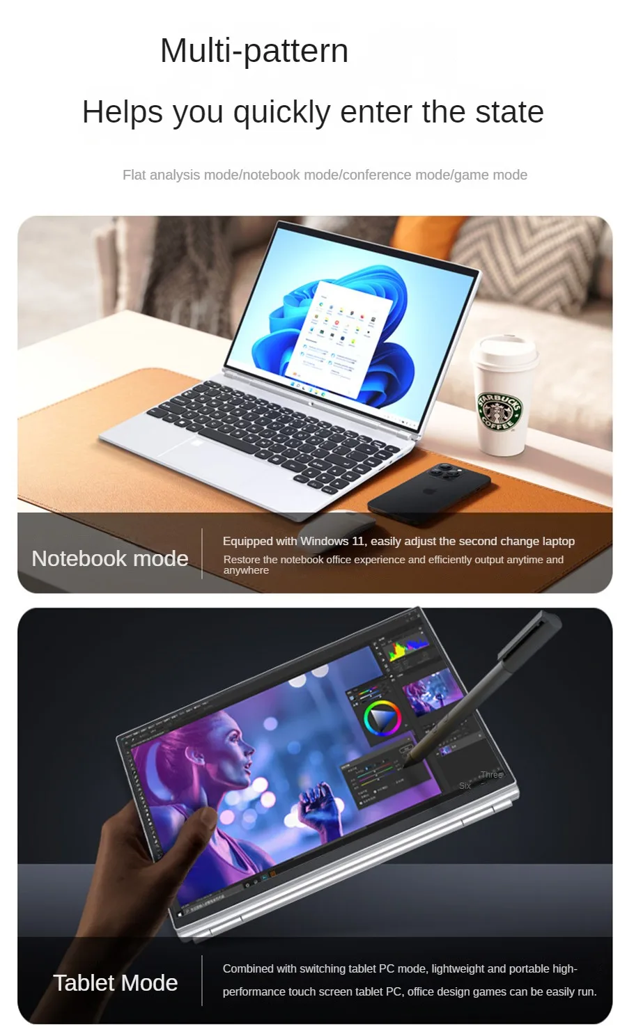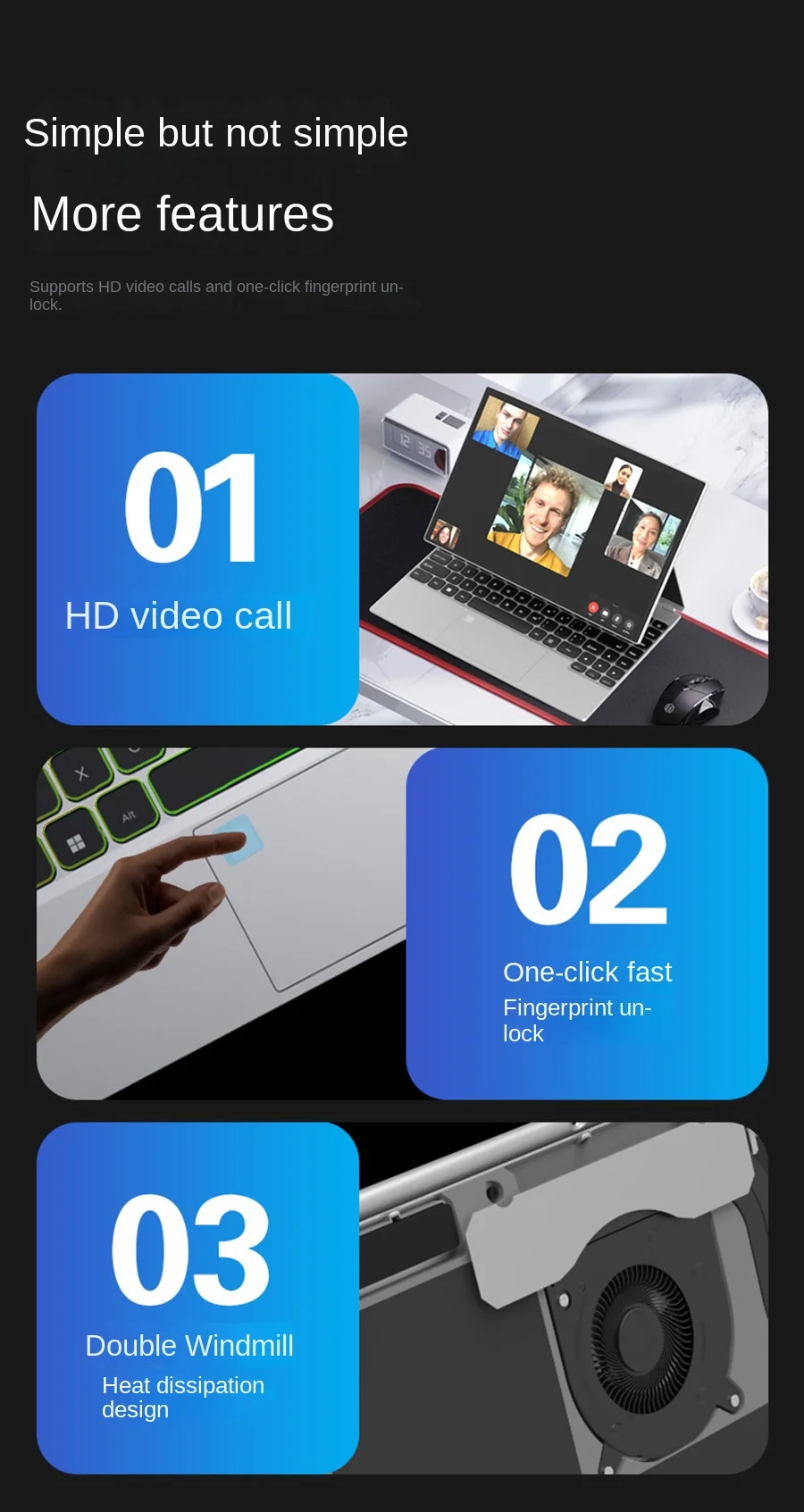 Ordenador de pantalla táctil, función de panel plano; apertura y cierre de 180 °; carcasa D para aumentar la actividad del soporte; cuatro biseles ultra estrechos, relación de pantalla de hasta 92%; teclado retroiluminado de sombrero redondo grande, reconocimiento de huellas dactilares.