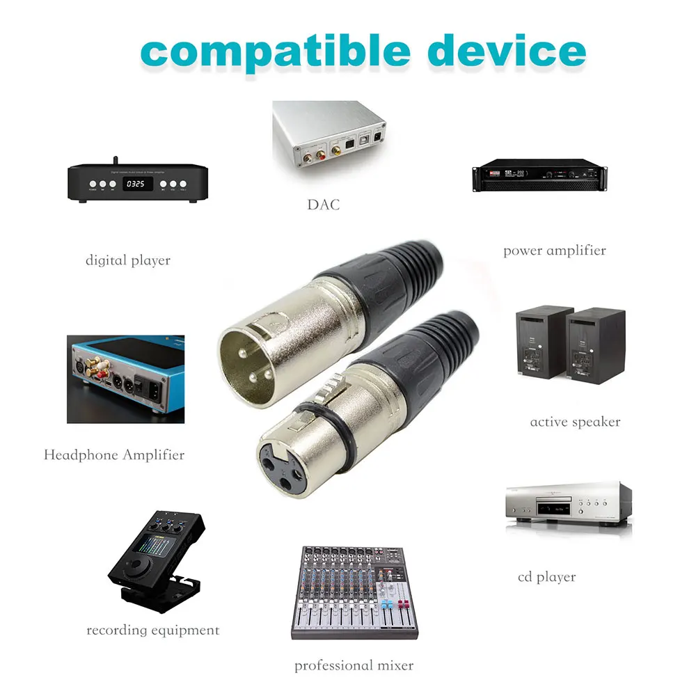 Nombre del producto: enchufe XLR macho y hembra de tres núcleos
