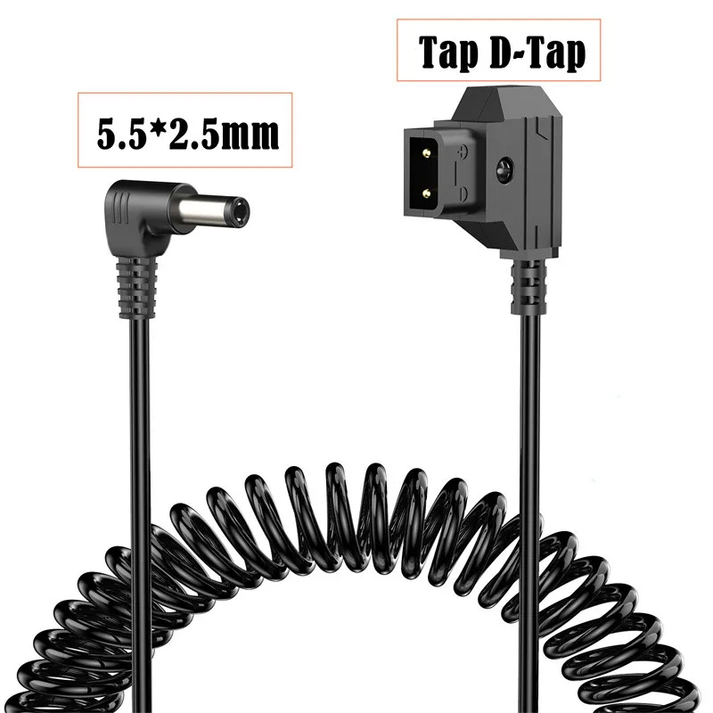 Comprar Grifo de alimentación en espiral D-Tap a Cable CC en ángulo recto de 90 grados, Cable de repuesto Dtap a CC para Anton Bauer KIPRO LCD Black Magic, Etc.