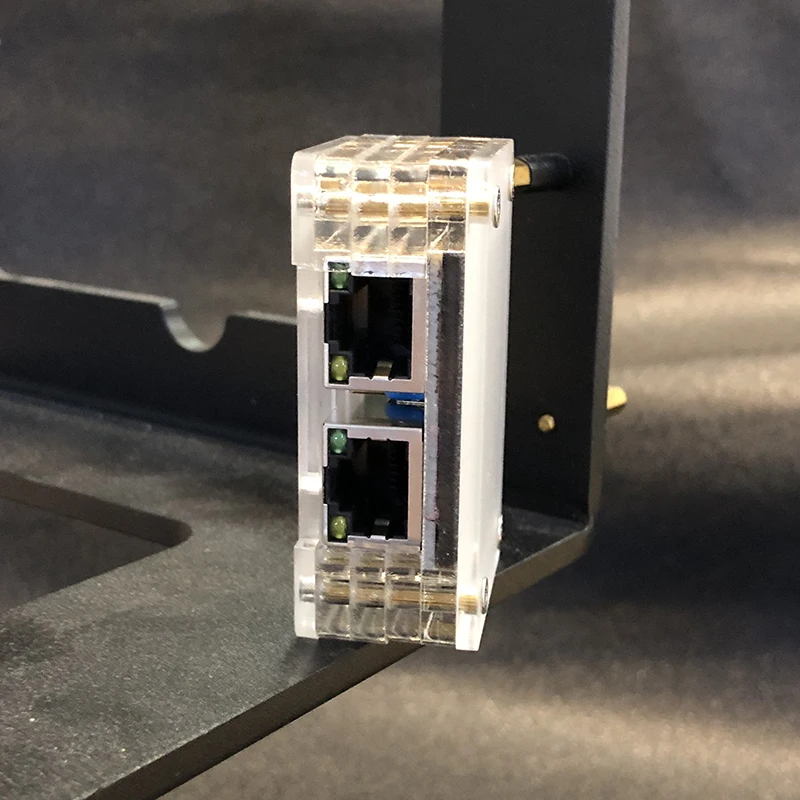 Los puertos de monitoreo (J3 y J4) son de solo recepción; se conectan a las líneas de recepción de datos en la estación de monitoreo pero no se conectan a las líneas de transmisión de la estación. Esto hace que sea imposible que la estación de monitorización transmita accidentalmente paquetes de datos a la red objetivo.