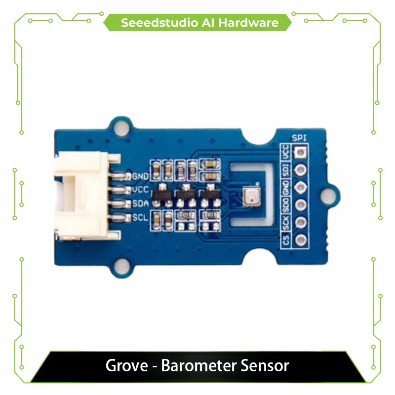 El sensor Grove-Temp & Humi & Barometer (BME280) es una placa de conexión para Bosch BMP280, un sensor combinado de humedad, presión y temperatura de alta precisión y baja potencia. La presión del aire se puede medir en un rango de 300 hPa a 1100hPa con una precisión de ± 1,0 hPa, mientras que el sensor funciona perfectamente para temperaturas entre-40 °C y 85 °C con una precisión de ± 1 °C. En cuanto a la humedad, puede obtener un valor de humedad con un error inferior al 3%. A medida que la presión atmosférica cambia con la altitud, también puede medir la altitud aproximada de un lugar. Podemos calcular la altitud con una precisión de ± 1 metro, lo que también lo convierte en un altímetro preciso. Se puede conectar a un microcontrolador con I2C (integrado con el enchufe Grove) o a través del bus SPI. También hemos proporcionado una biblioteca muy abstracta para que este producto sea más fácil de usar.