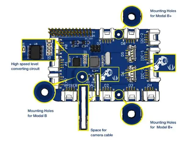 Qué es GrovePi+GrovePi+ es una placa complementaria con 15 interfaces Grove de 4 pines que lleva los sensores Grove al Raspberry Pi.Es la versión más nueva compatible con Raspberry Pi modelo B/B+/A+/2/3.GrovePi+ es un sistema modular y fácil de usar para piratería de hardware con Raspberry Pi, sin necesidad de soldar ni placas de pruebas: conecte sus sensores Grove y comience a programar directamente.Grove es una colección fácil de usar de más de 100 módulos plug-and-play económicos que detectan y controlan el mundo físico.Al conectar sensores Grove a Raspberry Pi, potencia su Pi en el mundo físico.Compatible perfectamente con Raspberry Pi modelo B/B+/A+/2/3Conexiones UART más rápidas y de mayor confiabilidadMás fácil de montar cables de cámara y cables LCD.Procedimientos simplificados de actualización de firmware