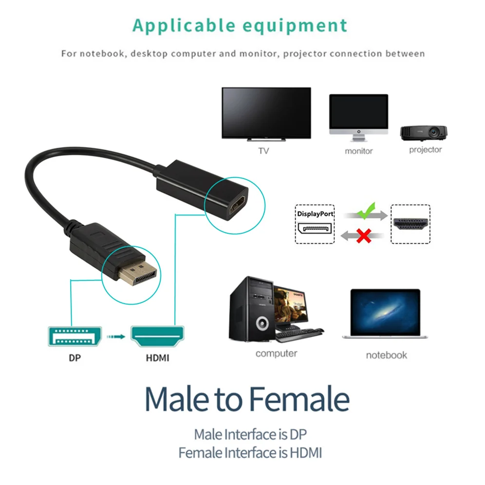 Adaptador de Cable Grwibeou DP a HDMI compatible macho a hembra para HP/DELL Laptop PC Display Port a 1080P HDMI-com 'adaptador de Cable