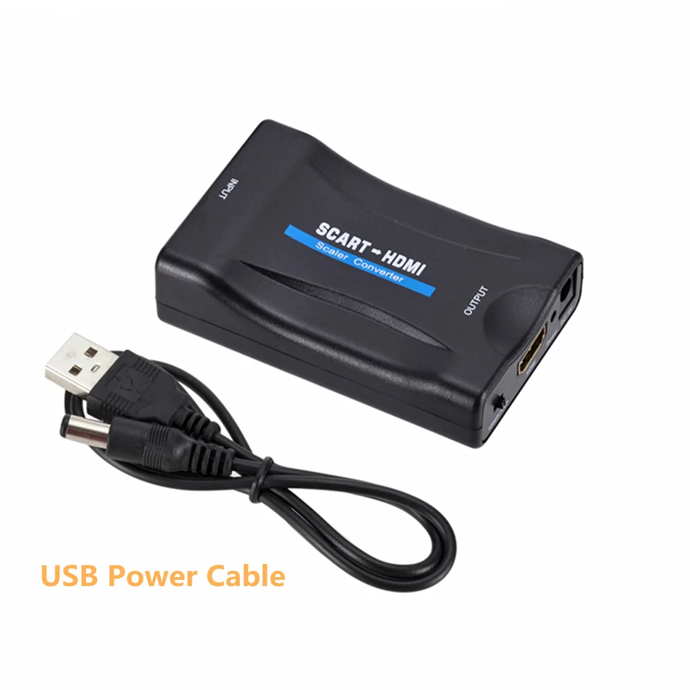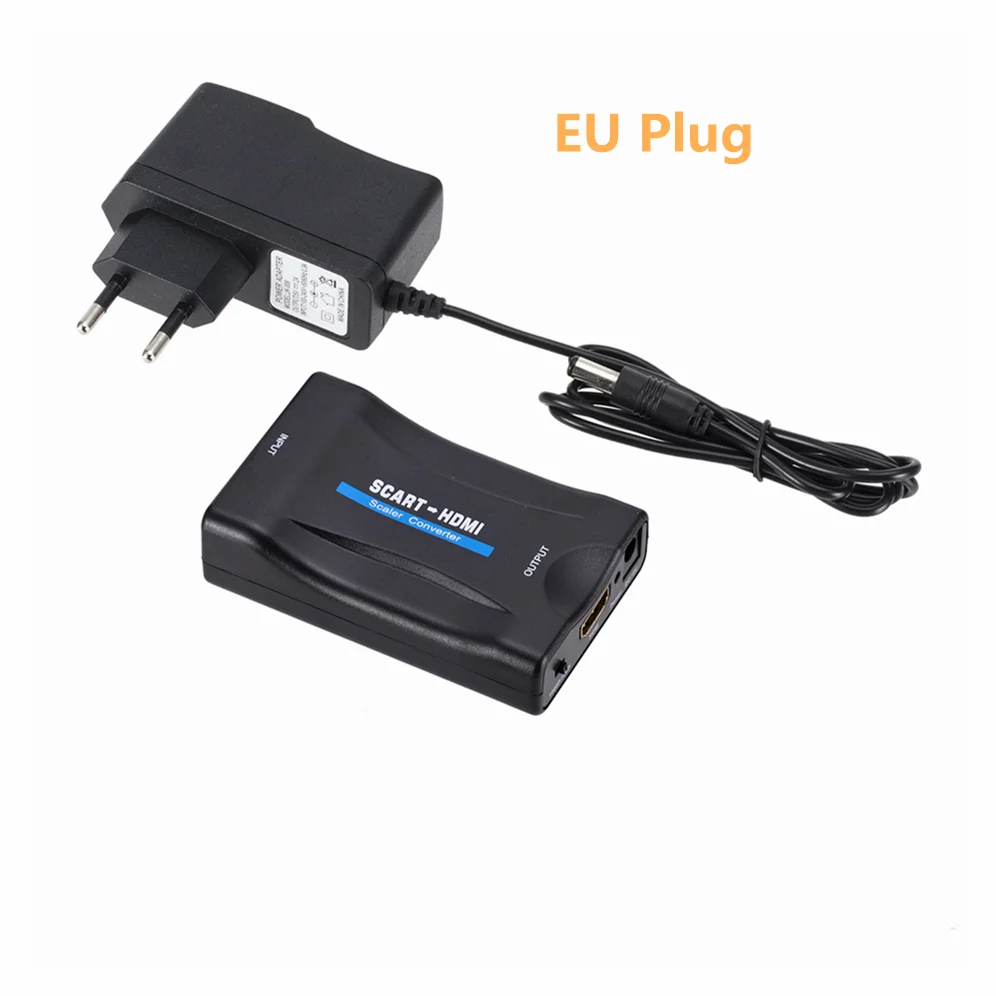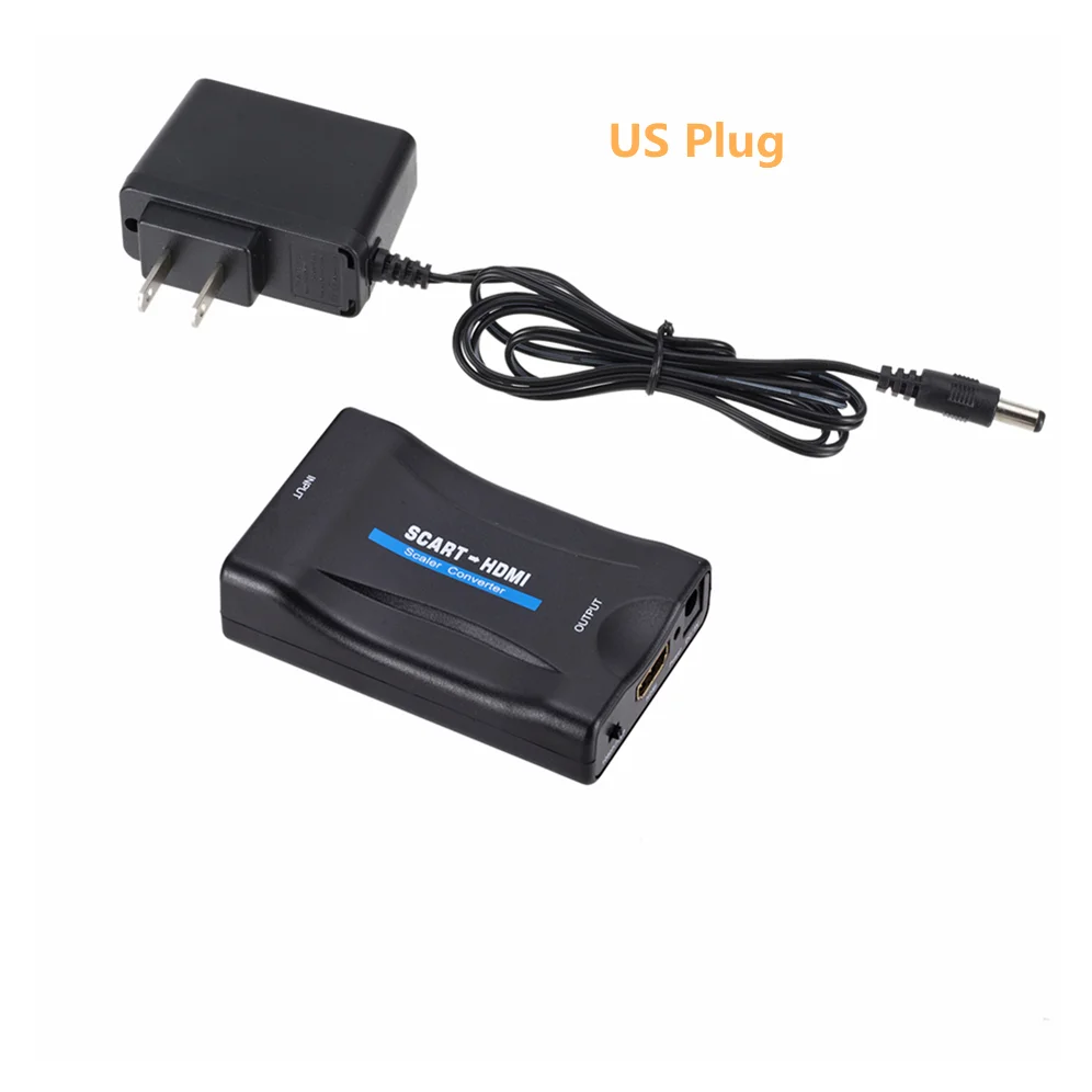 Comprar Grwibeou-Adaptador convertidor de vídeo Compatible con SCART a HDMI para HDTV DVD para Sky Box STB Plug and Play con adaptador de corriente CC, 1080P