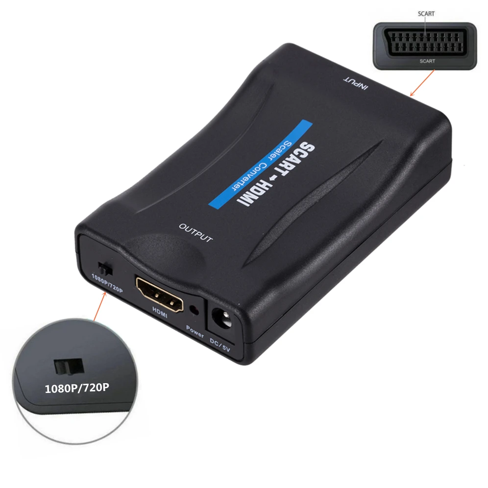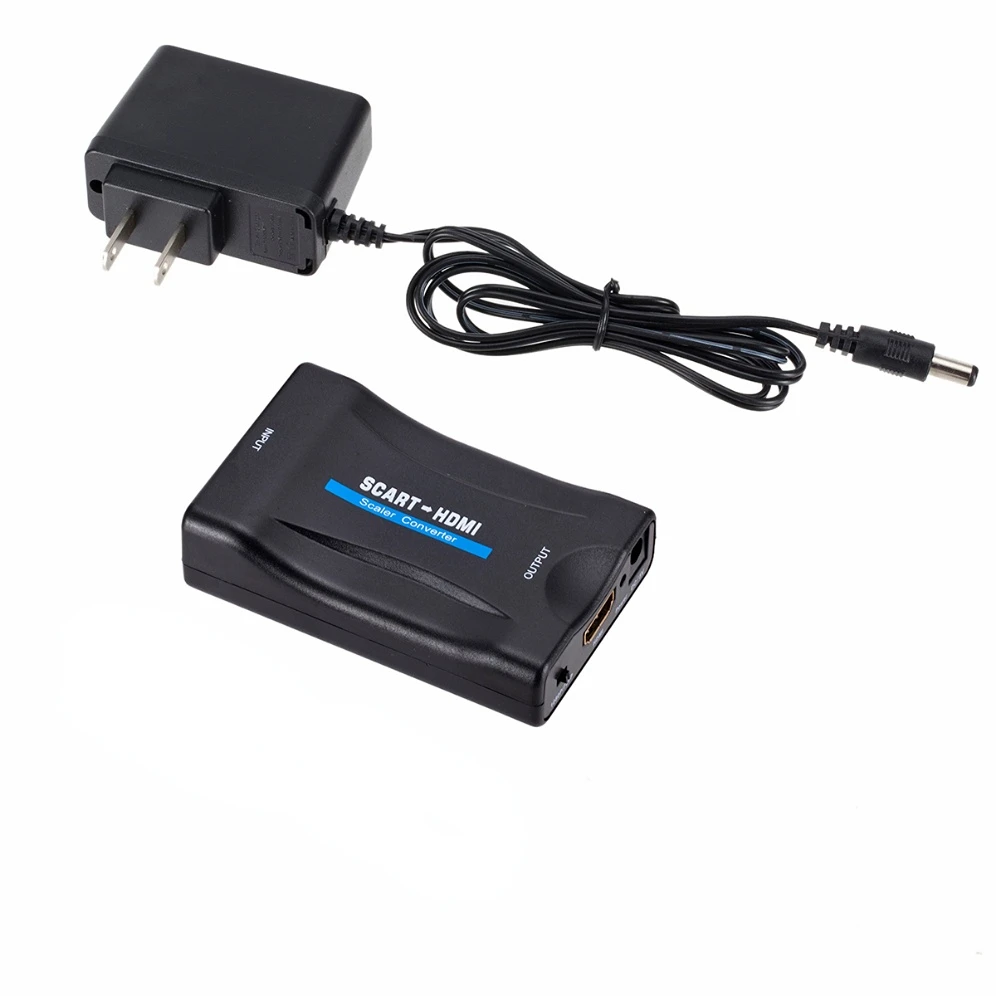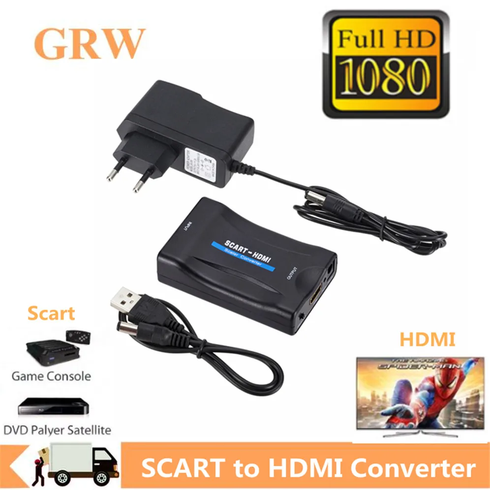 Comprar Grwibeou-Adaptador convertidor de vídeo Compatible con SCART a HDMI para HDTV DVD para Sky Box STB Plug and Play con adaptador de corriente CC, 1080P