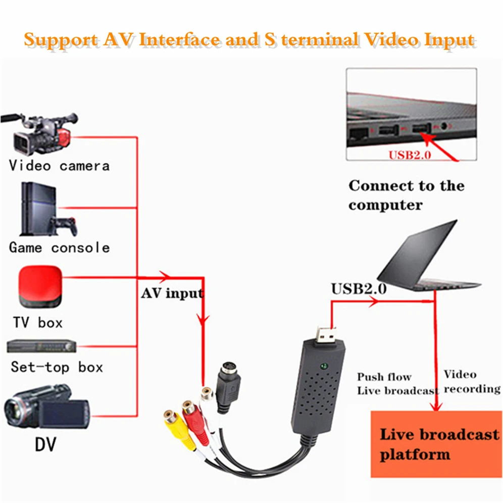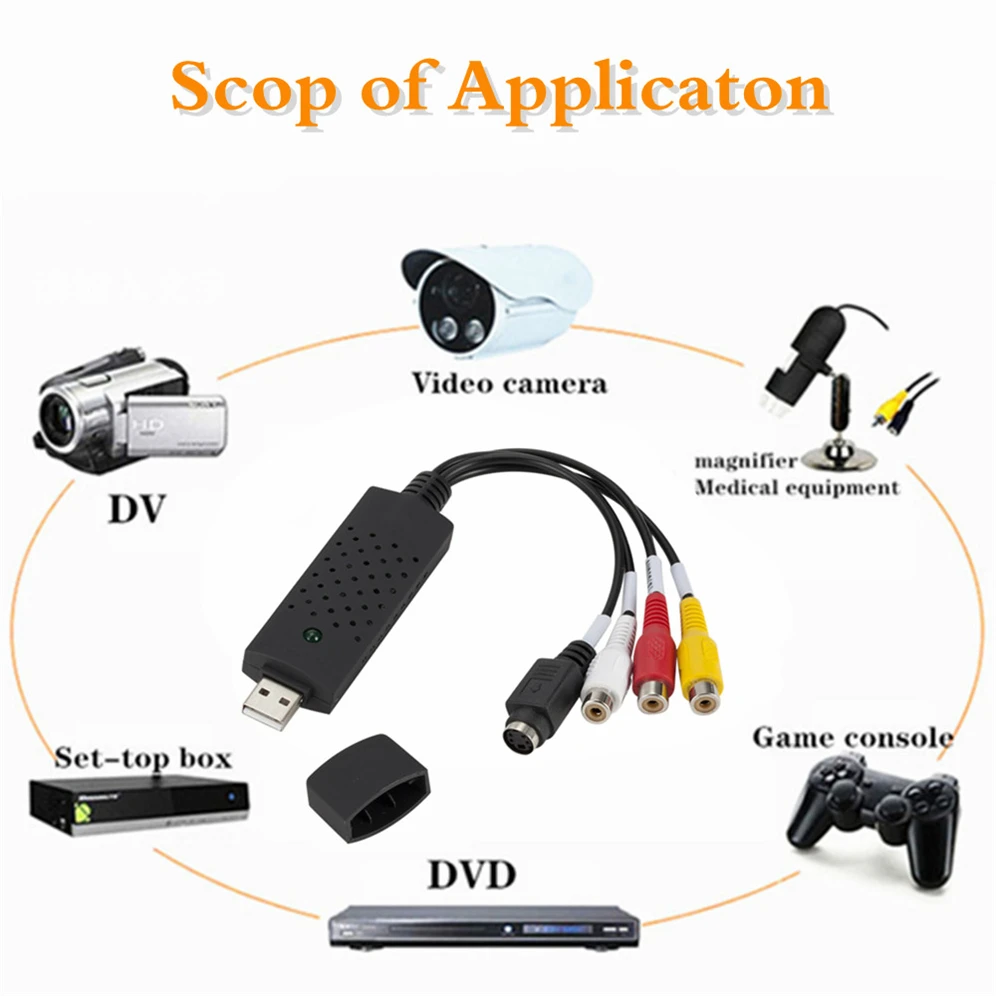 Comprar GRWIBEOU-Adaptador USB 2,0 a RCA, Cable convertidor USB 2,0, tarjeta de captura de Audio y vídeo RCA para TV, DVD, dispositivo de captura Win7 VHS para/8/XP