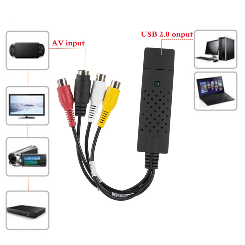 Comprar GRWIBEOU-Adaptador USB 2,0 a RCA, Cable convertidor USB 2,0, tarjeta de captura de Audio y vídeo RCA para TV, DVD, dispositivo de captura Win7 VHS para/8/XP