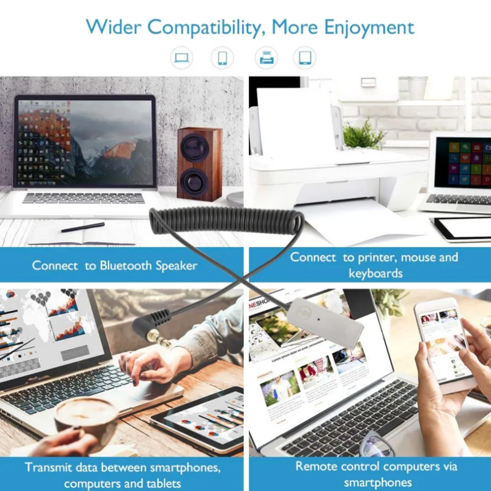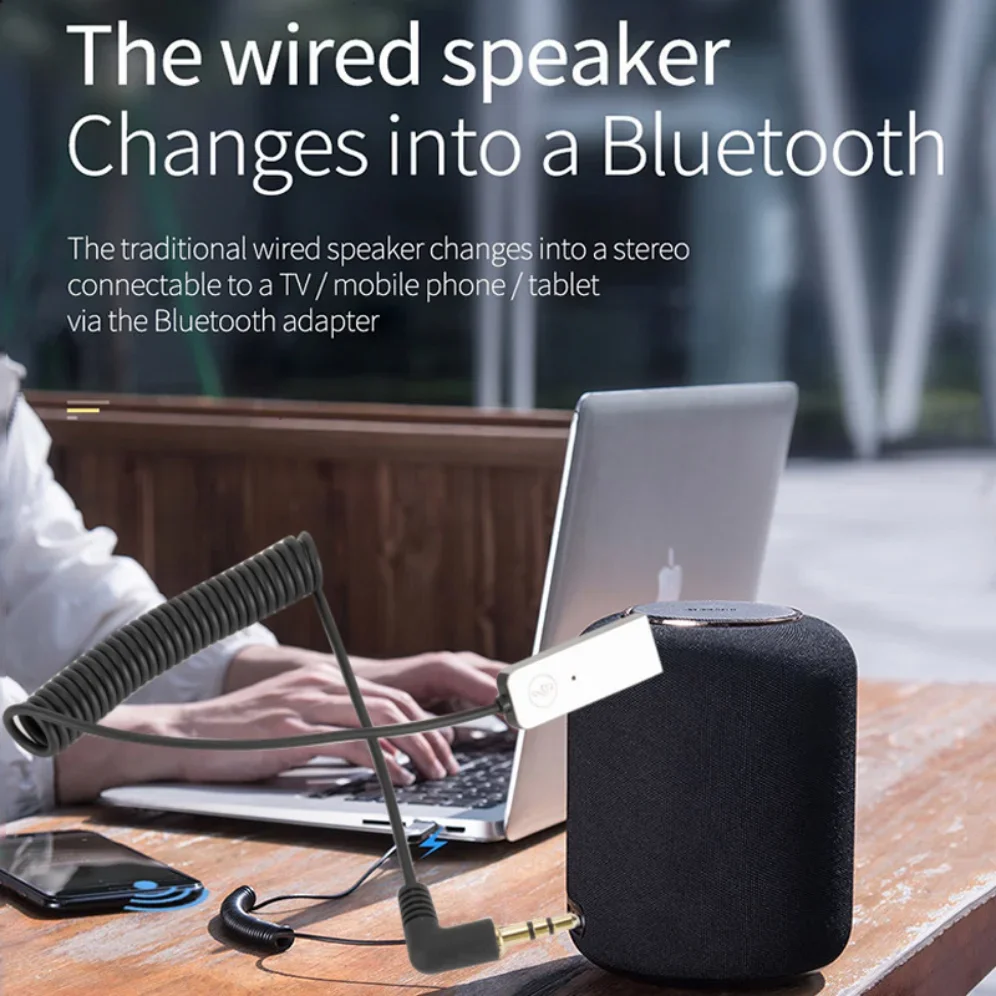 * Conexión de cable de audio:Conecte un extremo del conector de audio 3,5 al puerto AUX del dispositivo de audio, donde se conecta el cable de audio para garantizar mejor que la música no se distorsione ni se retrase durante la transmisión.