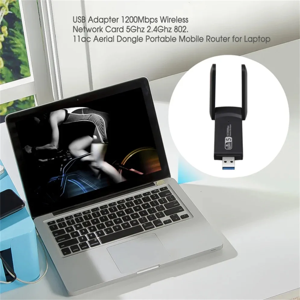 Comprar GRWIBEOU-adaptador Wifi USB 3,0, tarjeta de red inalámbrica de 1200Mbps, banda Dual, 2,4G, 5,0G, Dongle, LAN, Ethernet, para PC y portátil