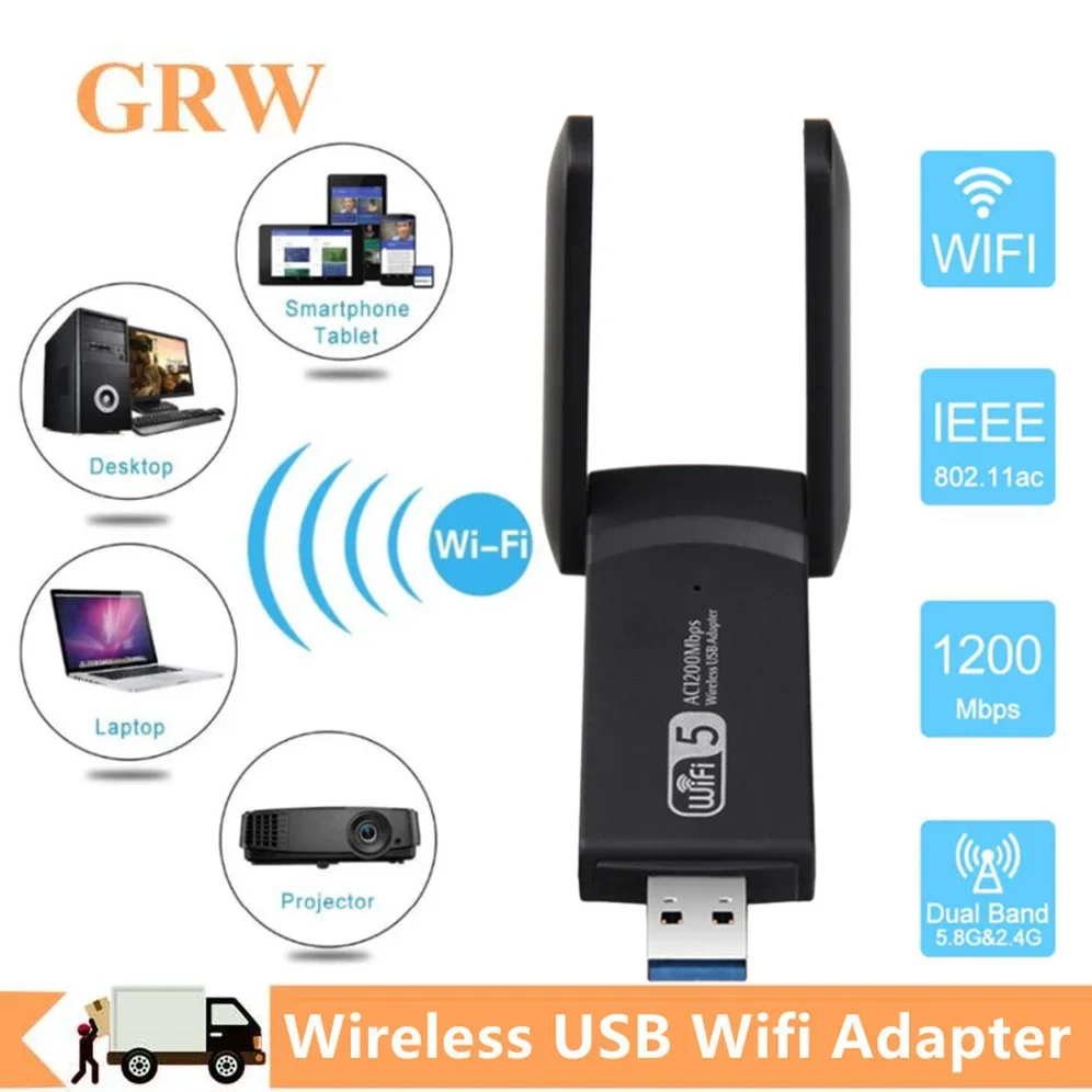 Comprar GRWIBEOU-adaptador Wifi USB 3,0, tarjeta de red inalámbrica de 1200Mbps, banda Dual, 2,4G, 5,0G, Dongle, LAN, Ethernet, para PC y portátil