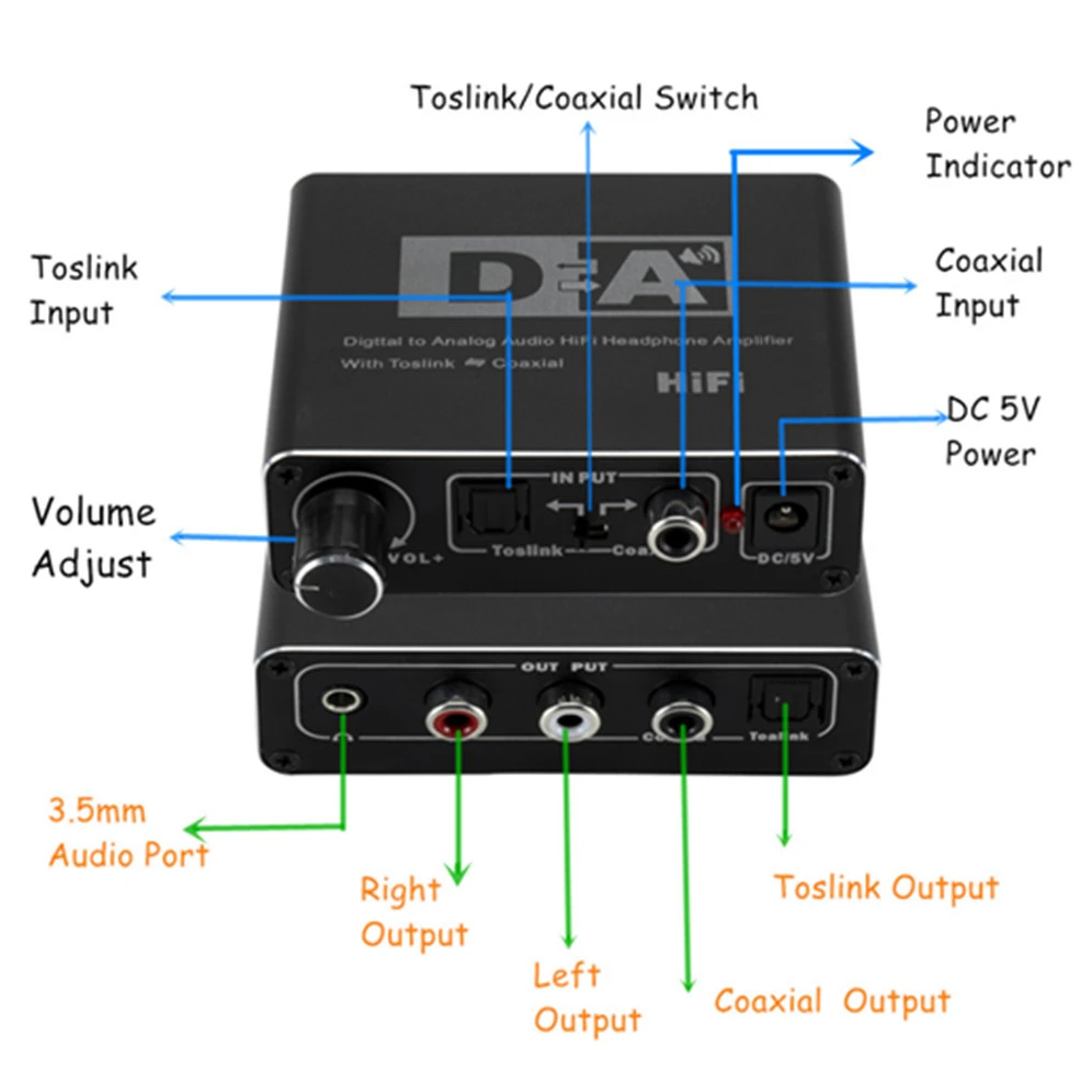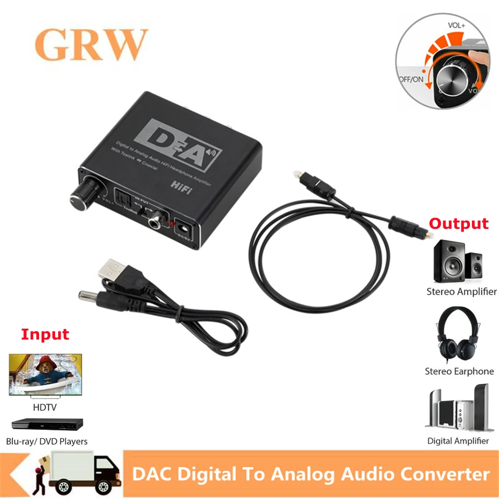 Comprar Grwibeou-Amplificador de alta fidelidad DAC, convertidor de Audio Digital a analógico, decodificador de 3,5mm, adaptador AUX RCA, salida Coaxial óptica Toslink