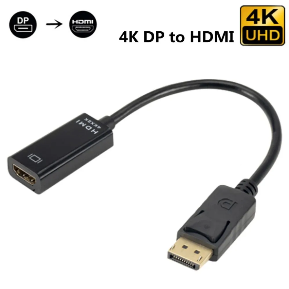Características: Adaptador/cable Displayport 4K o 1080P a HDMI: El adaptador portátil conecta un ordenador portátil o de escritorio equipado con DisplayPort (DP, DP ++, DisplayPort ++) a un HDTV, monitor o proyector con entrada HDMI; se requiere un cable HDMI (se vende por separado). Transmite audio y video de alta definición desde su computadora a un HDTV para transmisión de video o juegos; Conecte y configure su monitor para un escritorio extendido o pantallas espejadas. Admite Resolución 4K @ 30Hz (3840x2160) o 1080P Ultra HD y canales de audio digitales sin comprimir 7,1, 5,1 o 2. Los conectores chapados en oro resisten la corrosión, proporcionan durabilidad y mejoran la transmisión de la señal. El conector DisplayPort con pestillos proporciona una conexión segura con un botón de liberación que Debe presionarse antes de desenchufar.