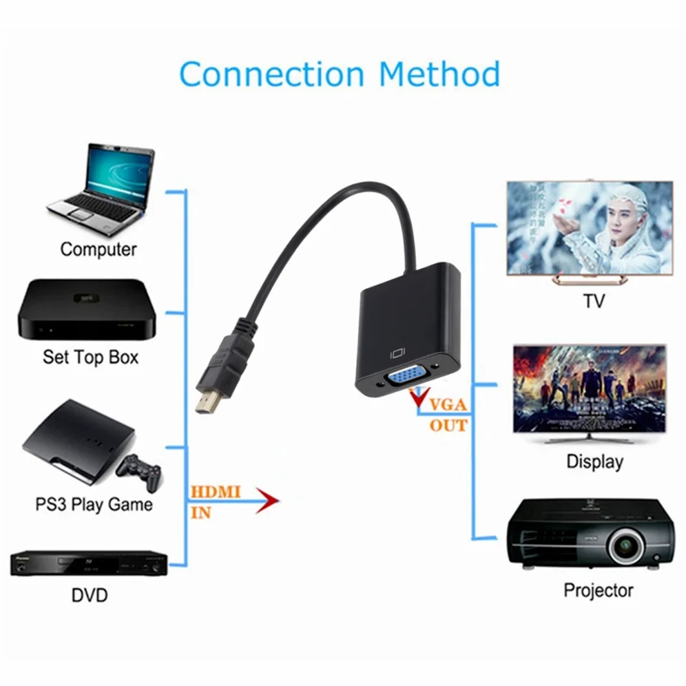 Comprar Grwibeou-Cable adaptador HDMI a VGA, convertidor Digital a analógico de 1080P para Xbox, PS4, PC, portátil, proyector, HDTV