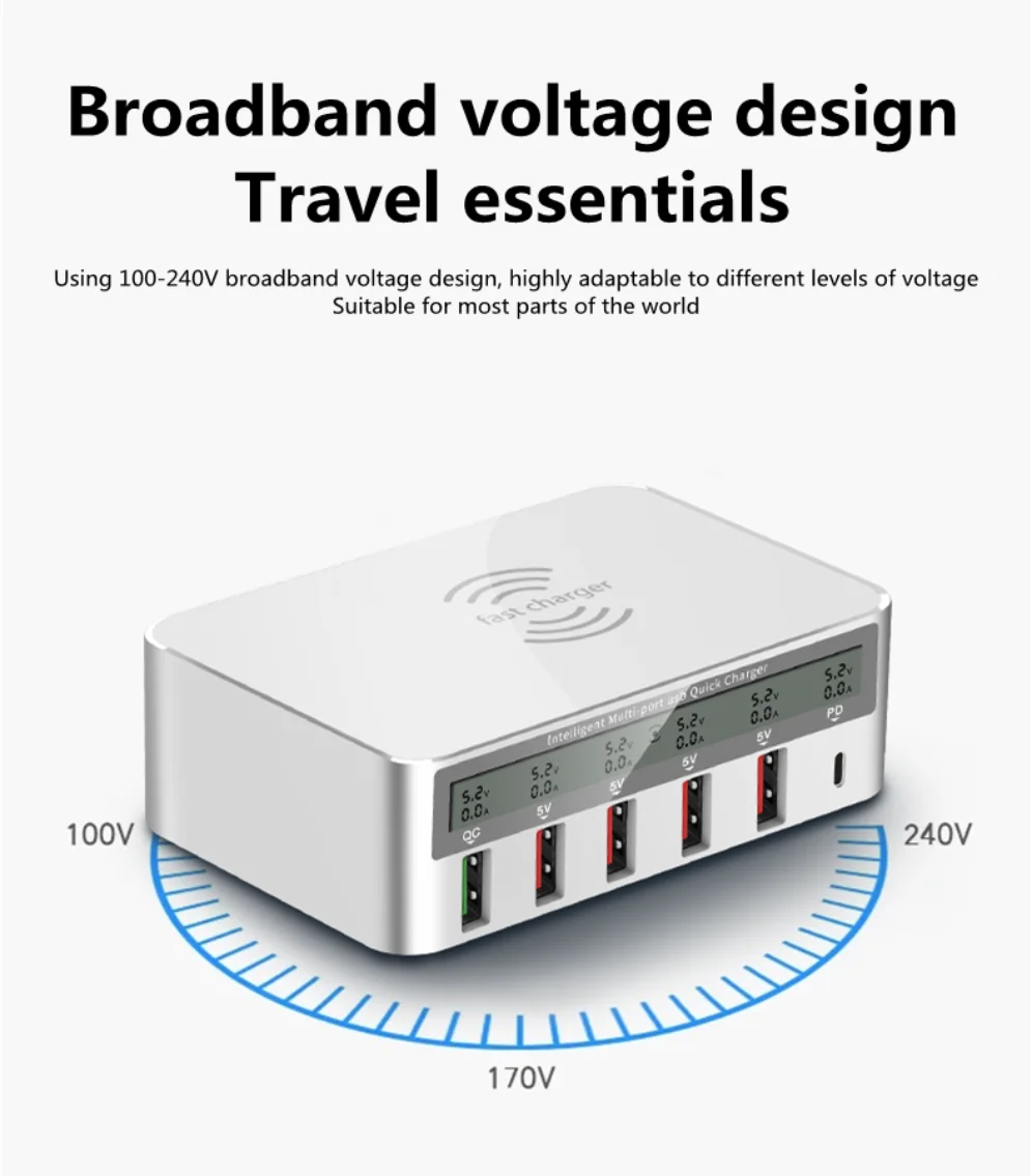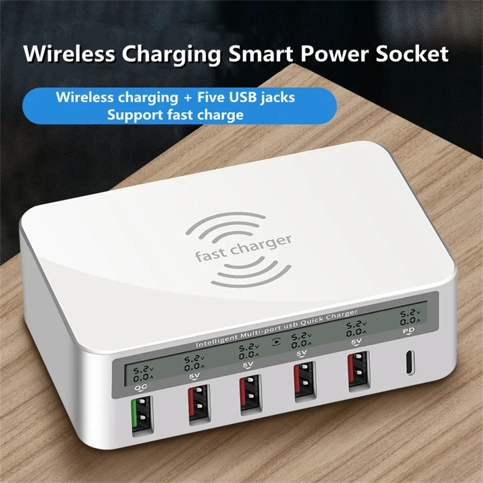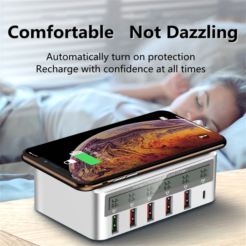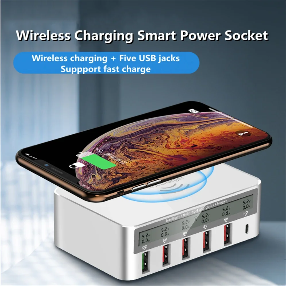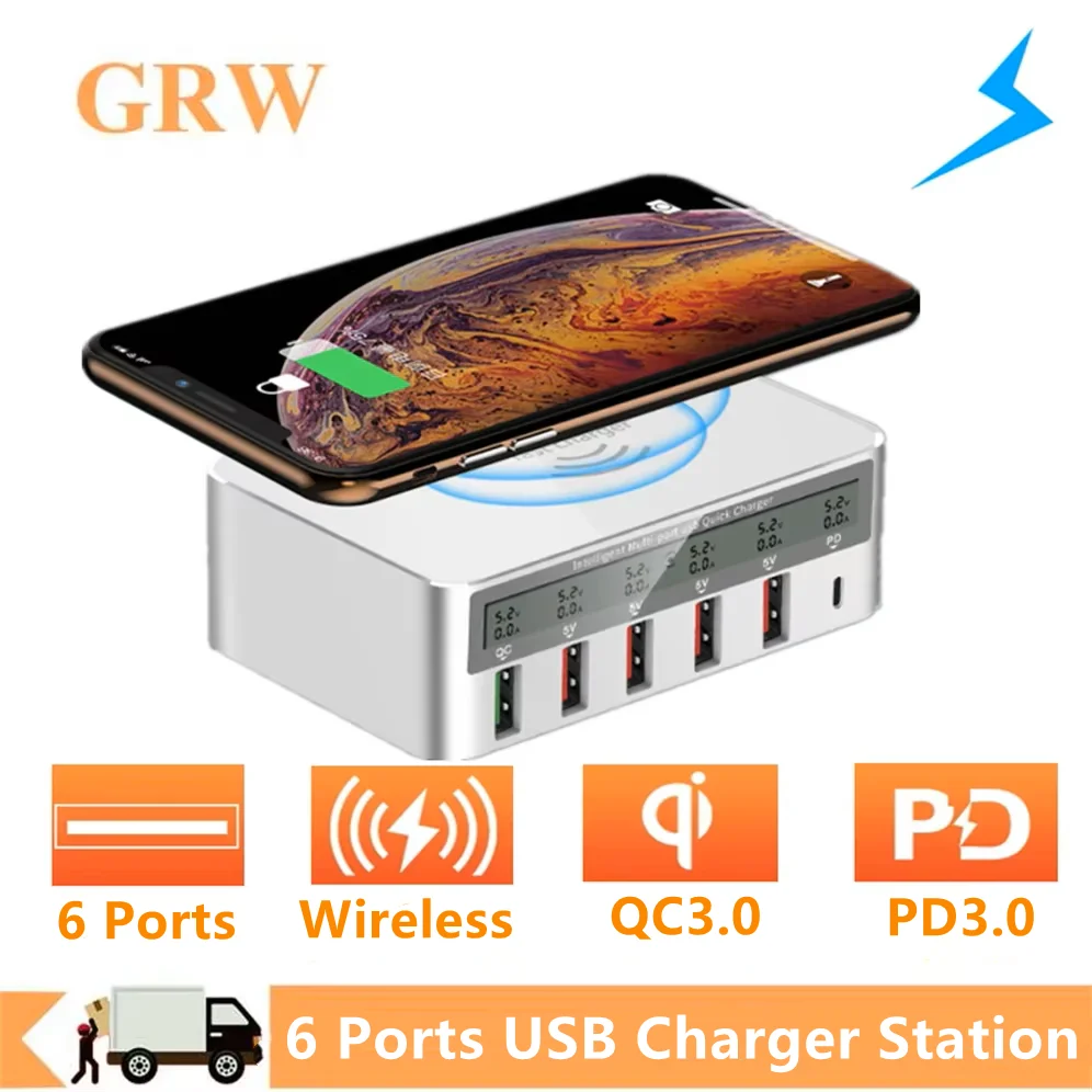 Comprar GRWIBEOU-cargador USB 3,0 de carga rápida, estación de carga rápida PD para iPhone 16, tableta, teléfono, concentrador de cargador inalámbrico QI, 50W