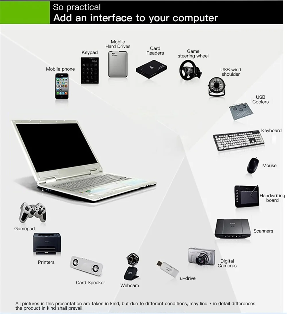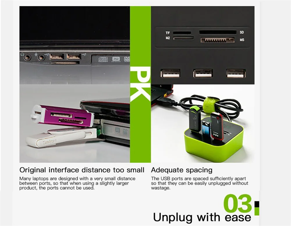 1. Alta velocidad y 4 puertos USB 2. 0 HUB