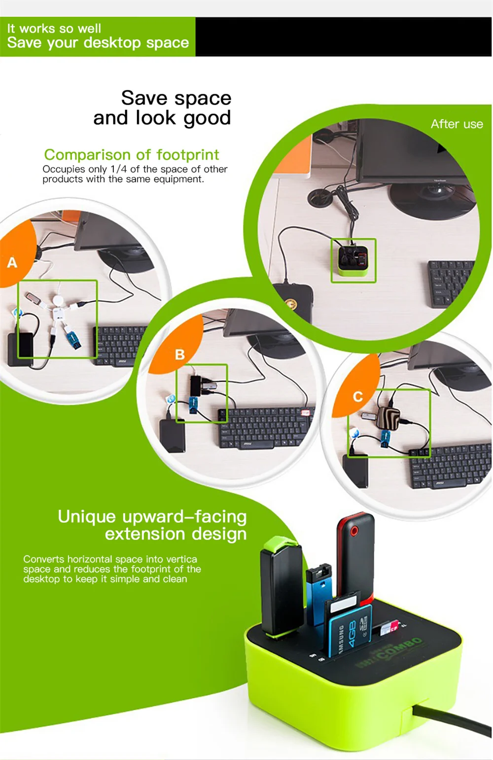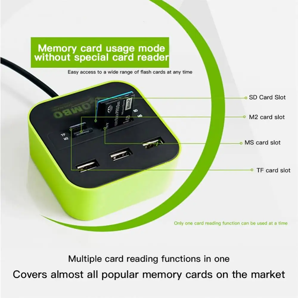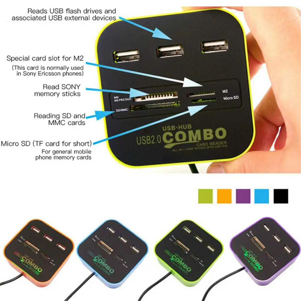 Grwibeou USB Hub Combo 3 puertos USB 2,0 Lector de tarjetas/TF USB Splitter Hub Combo Todo en PC Accesorios de computadora