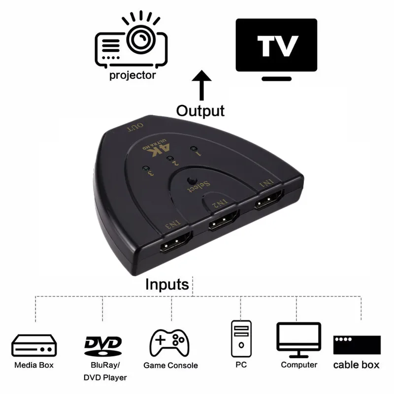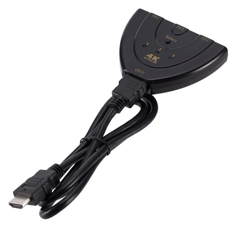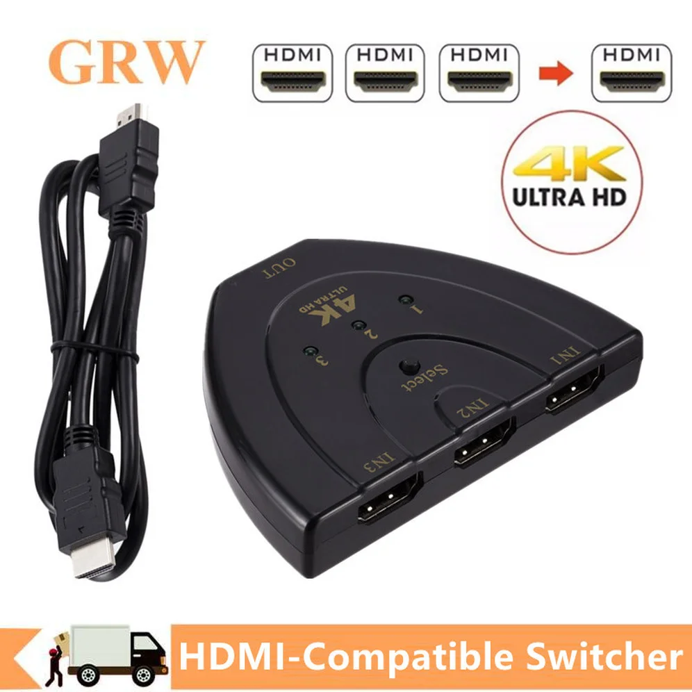 Grwibeou 4K 3D Conmutador compatible con HDMI 3 puertos HDMI Splitter 3 en 1 salida Conmutador compatible con HDMI para DVD HDTV Xbox PS3 PS4