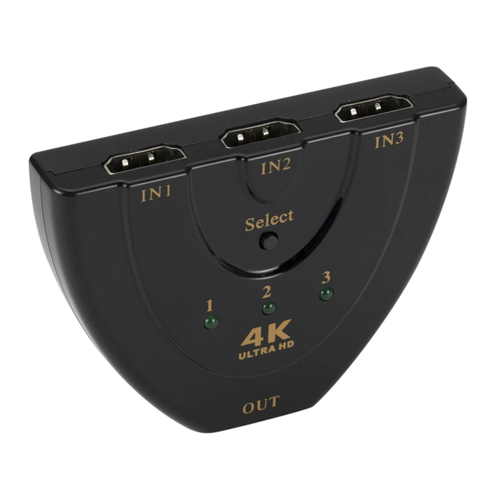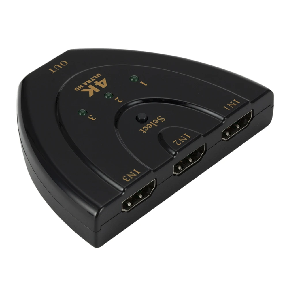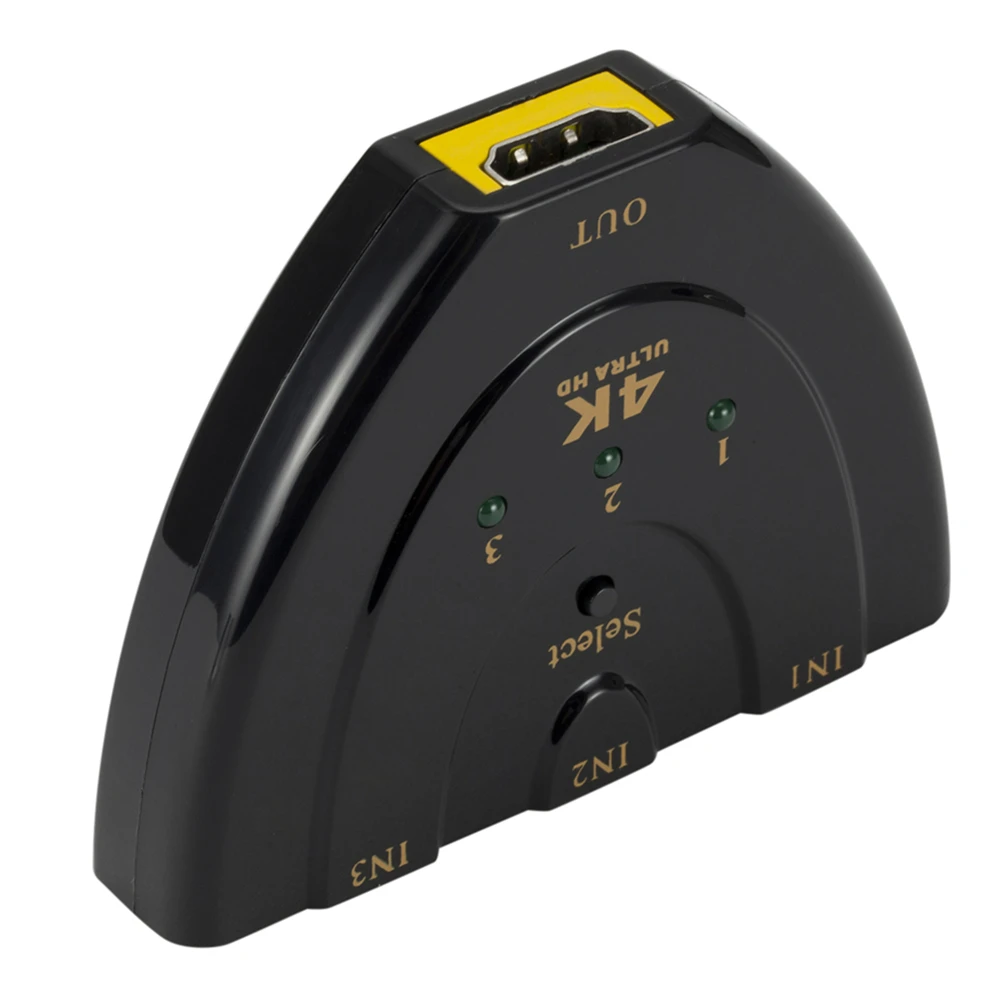 Conmutador HDMI de alto rendimiento Cambia fácilmente tres fuentes a una pantalla.