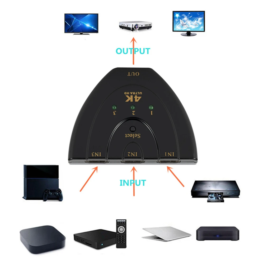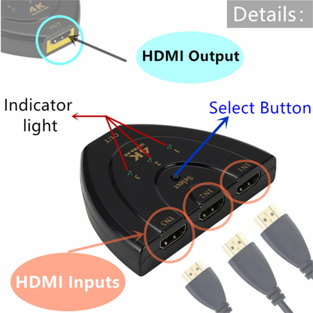 Comprar GRWIBEOU-conmutador HDMI divisor 3 puertos Mini 4K * 2K, convertidor de interruptor 1080P para DVD HDTV PC proyector 3 en 1, Hub de puerto de salida