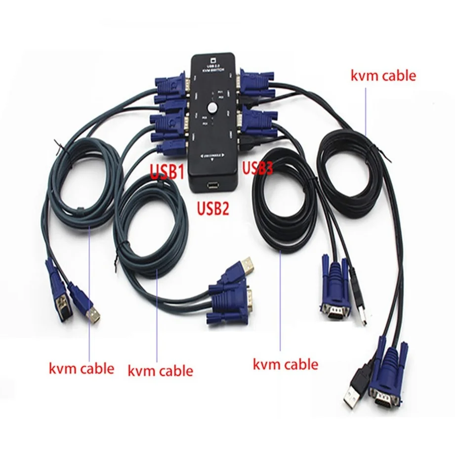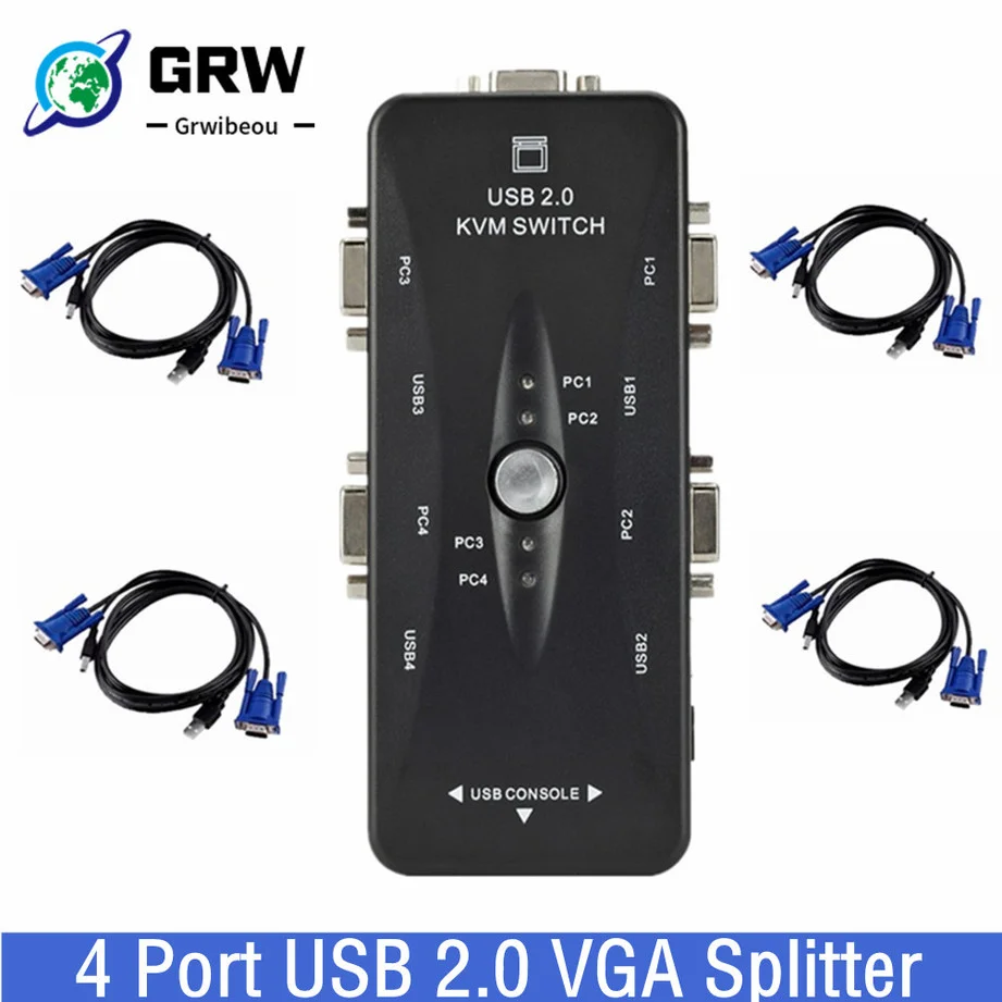 Comprar Grwibeou-conmutador Kvm de 4 puertos, divisor VGA USB 2,0, para impresora, ratón, teclado, Pendrive, compartir, 1920x1440, adaptador de caja de interruptor VGA