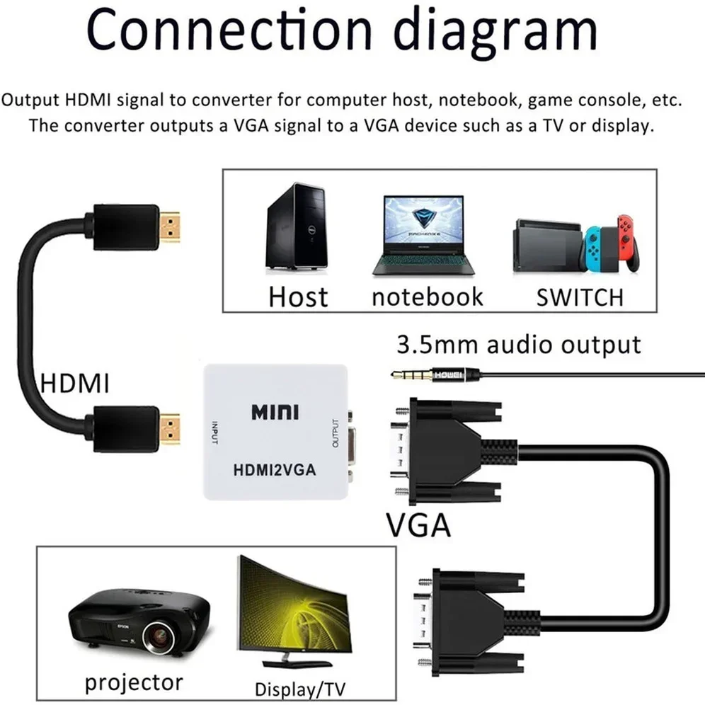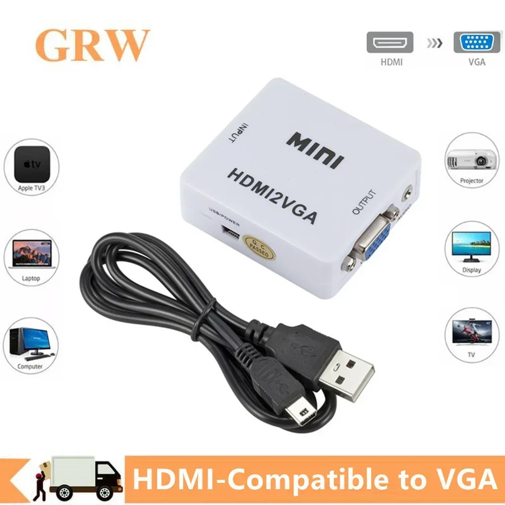 Comprar GRWIBEOU-convertidor Compatible con HDMI a VGA con conector de Audio HD 1080P, Compatible con HDMI a VGA, caja adaptadora de vídeo para PC Xbox360 DVD