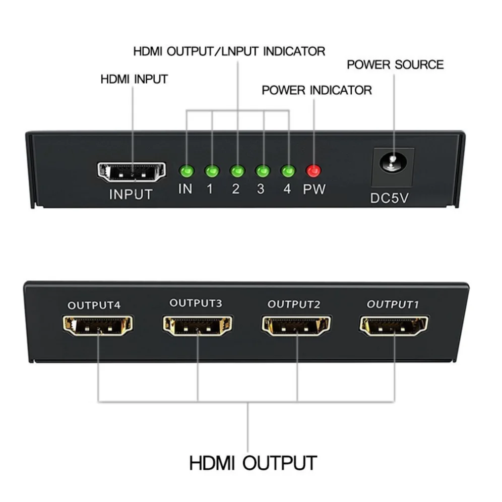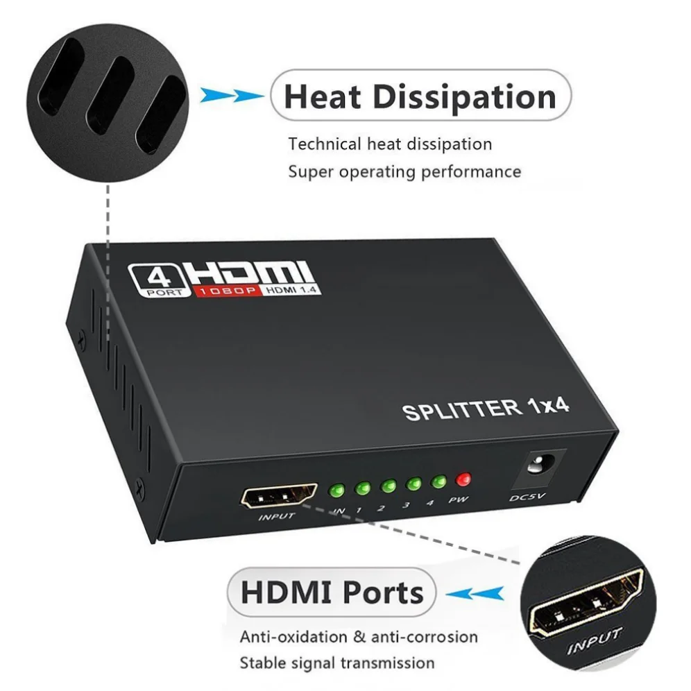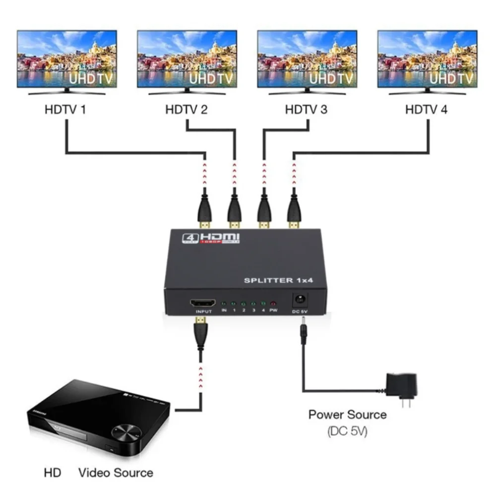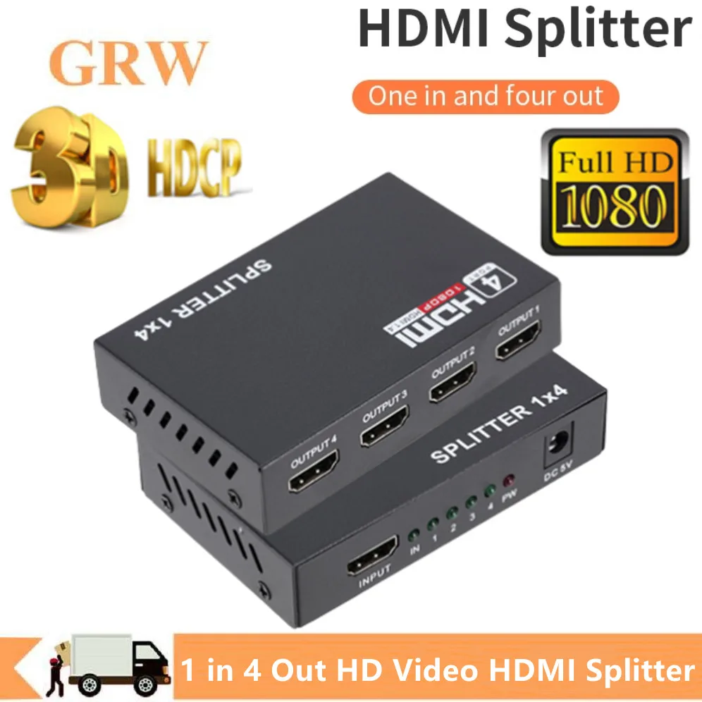 Comprar GRWIBEOU-divisor compatible con HDMI HDCP 1 en 4 salida amplificador de señal de potencia 3D 1080P 1x4 interruptor divisor de Audio adaptador convertidor HD