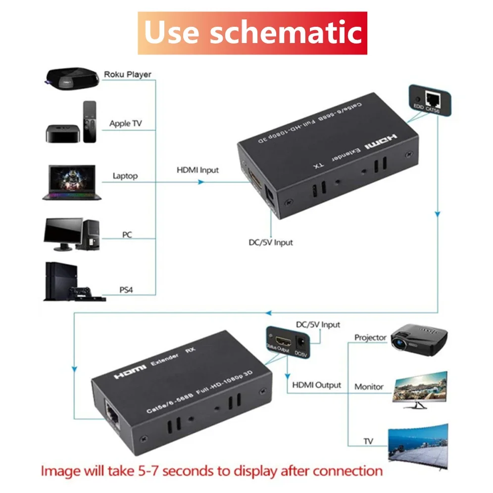 El extensor HDMI de 60 M extiende la señal HDMI hasta 60 metros a través de un solo cable Ethernet de un solo cable o CAT-6 (recomendado), rompe la limitación de la longitud de la transmisión HDMI, y ahorro de costos para la transmisión de larga distancia HDMI, para que otros proyectos y cableado doméstico sean más estables y eficientes, ahorrando significativamente el costo del cliente.