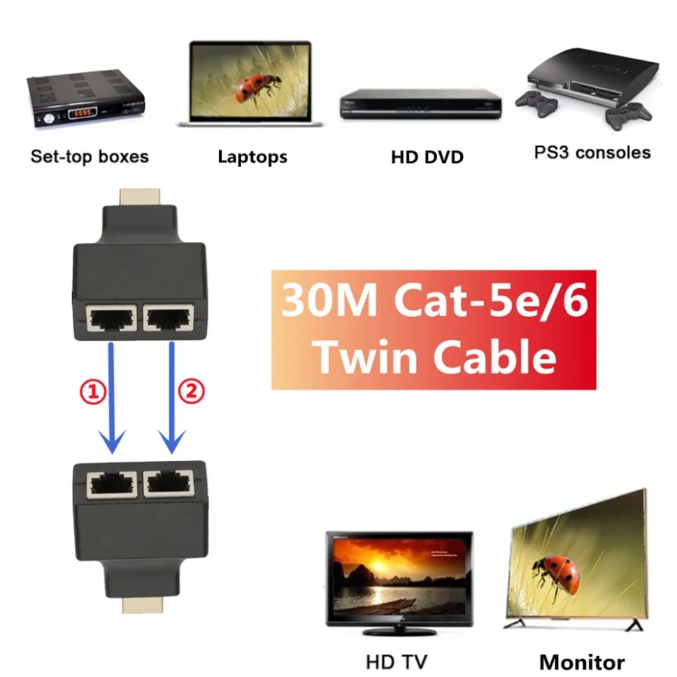 1 x extensor de cable de red RJ45 de HDMI a doble puerto