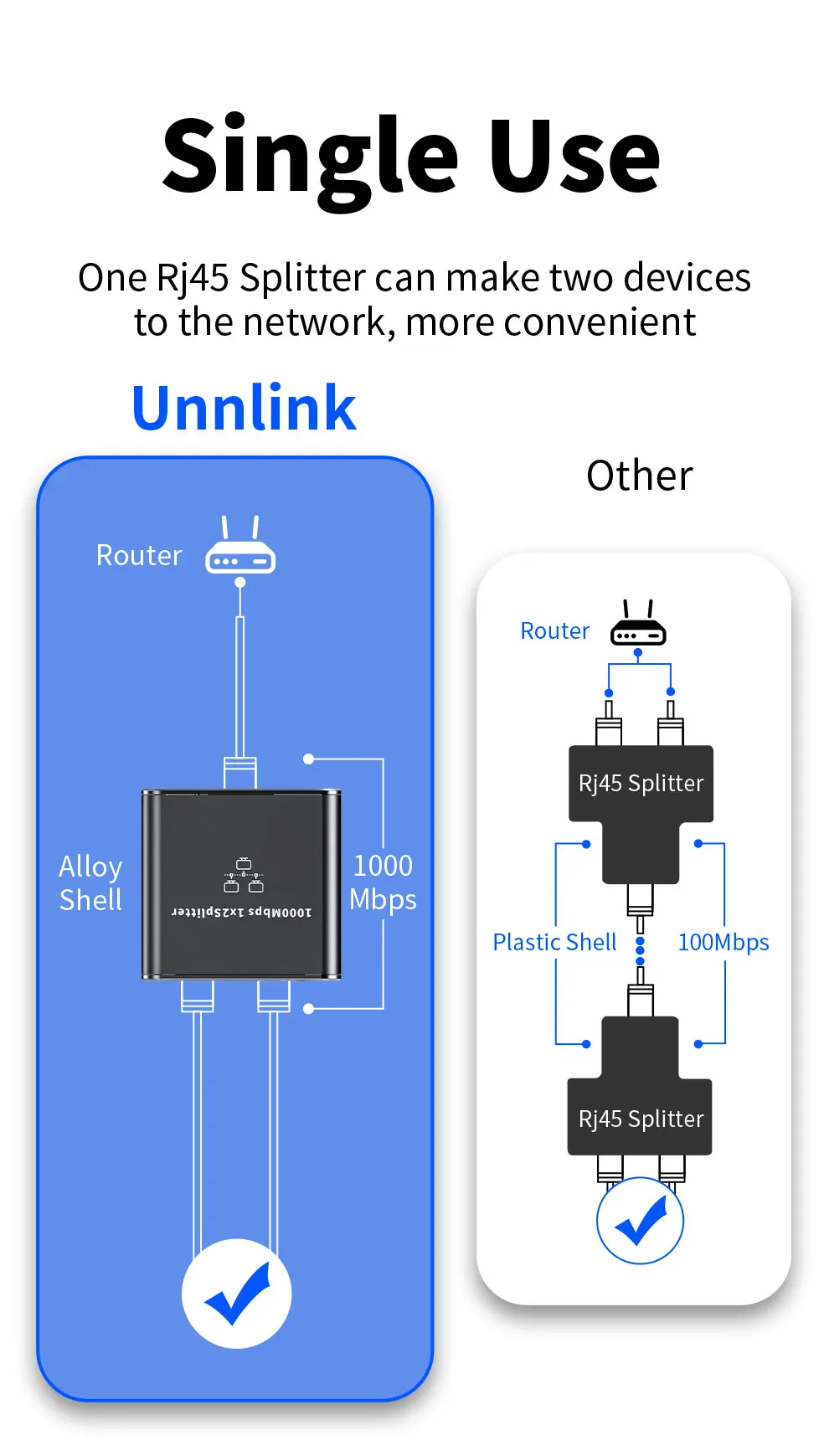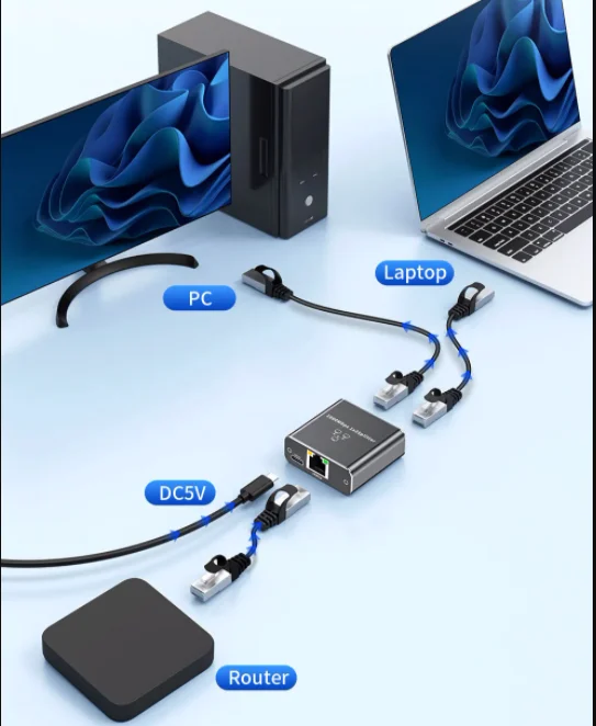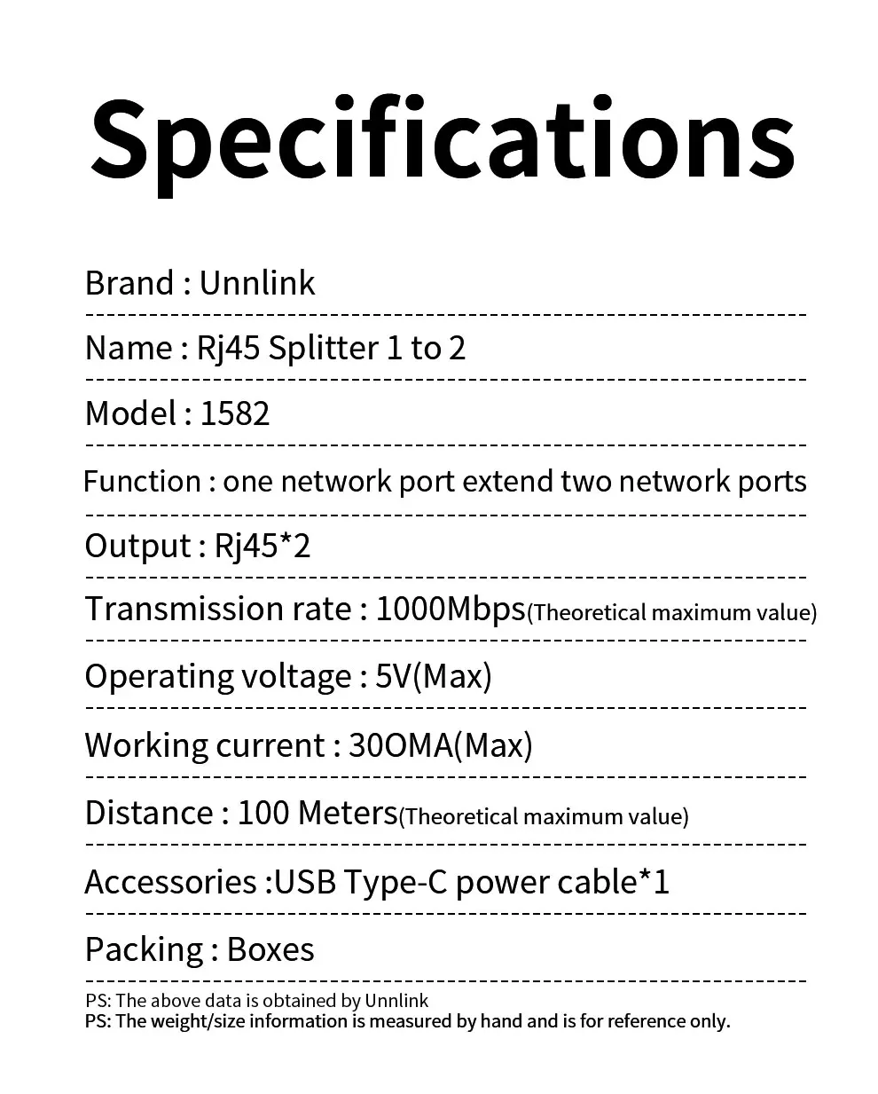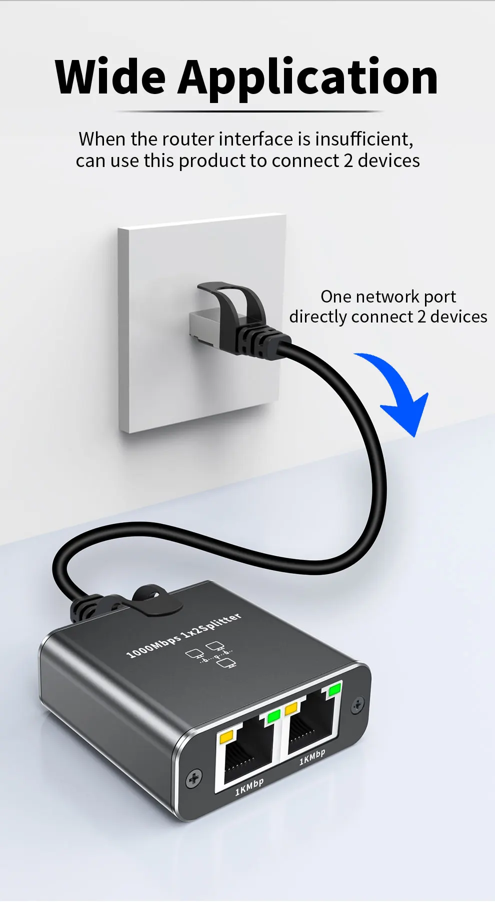 Hay dos opciones, una es el divisor rj45 de 1000 Mbps y la otra es el divisor rj45 de 100 Mbps.Elige el producto correcto.